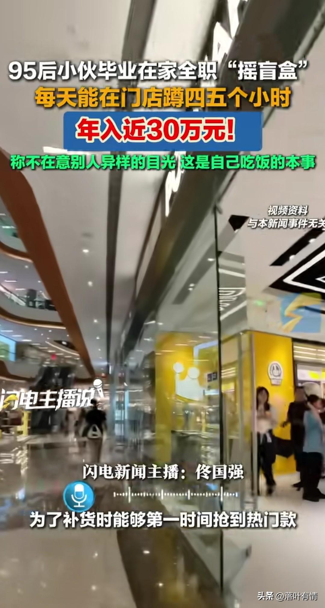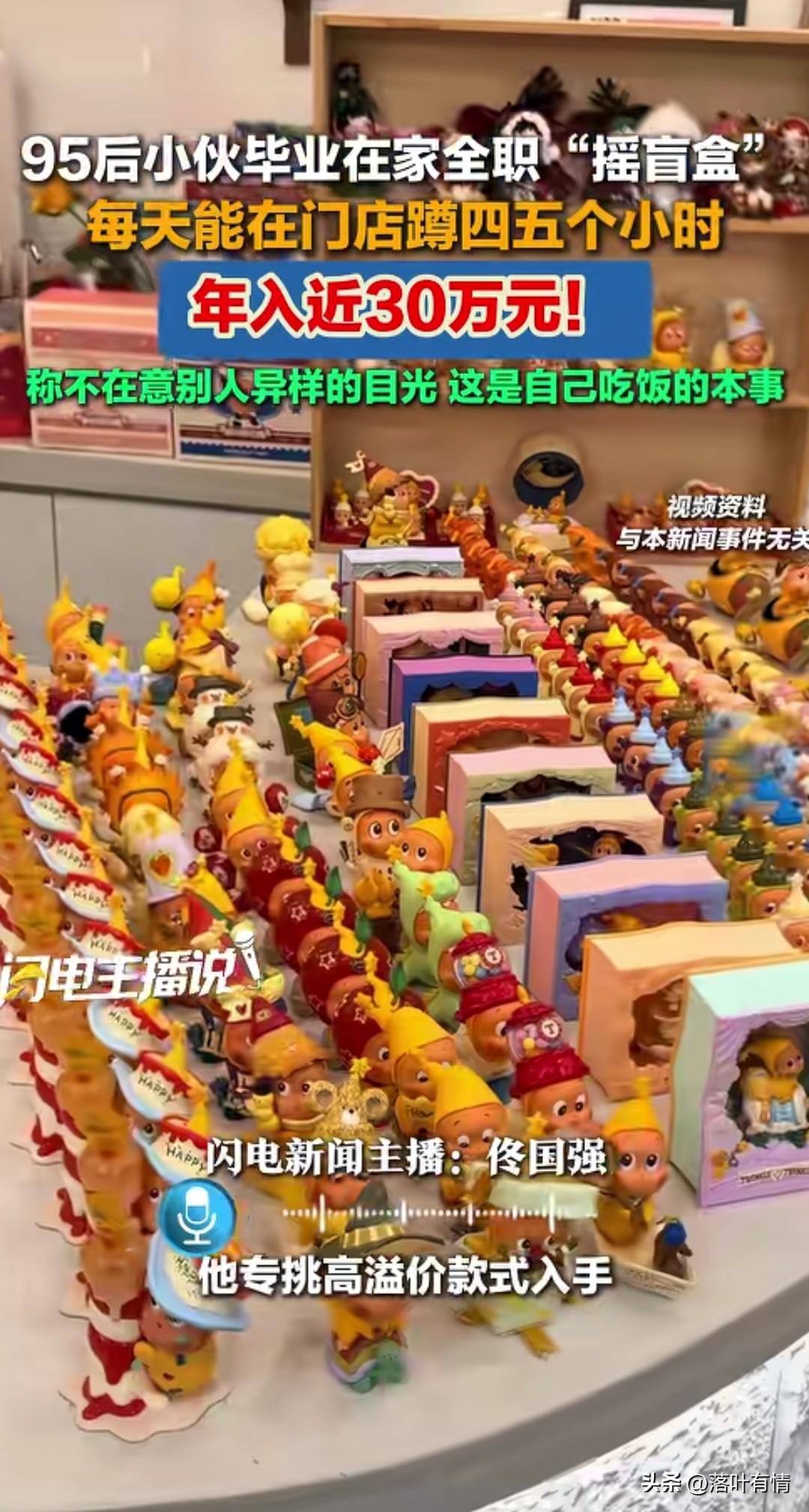 九五后小伙靠摇盲盒, 居然年收入高达30万, 每天在门店门口蹲守四五个小时, 只要有补货的时候, 他就第一时间进店摇盲盒, 通过听声音直接辨别高溢价手办, 随后再进行二手买卖, 直接赚的盆满钵满, 短短一年挣了30万, 很多人都是买惊喜, 确实靠这门手艺挣到了大钱, 这真的是有才人, 这个时代从来不缺乏发财的机会, 就看你中不中用了! 大家觉得这小伙厉不厉害?