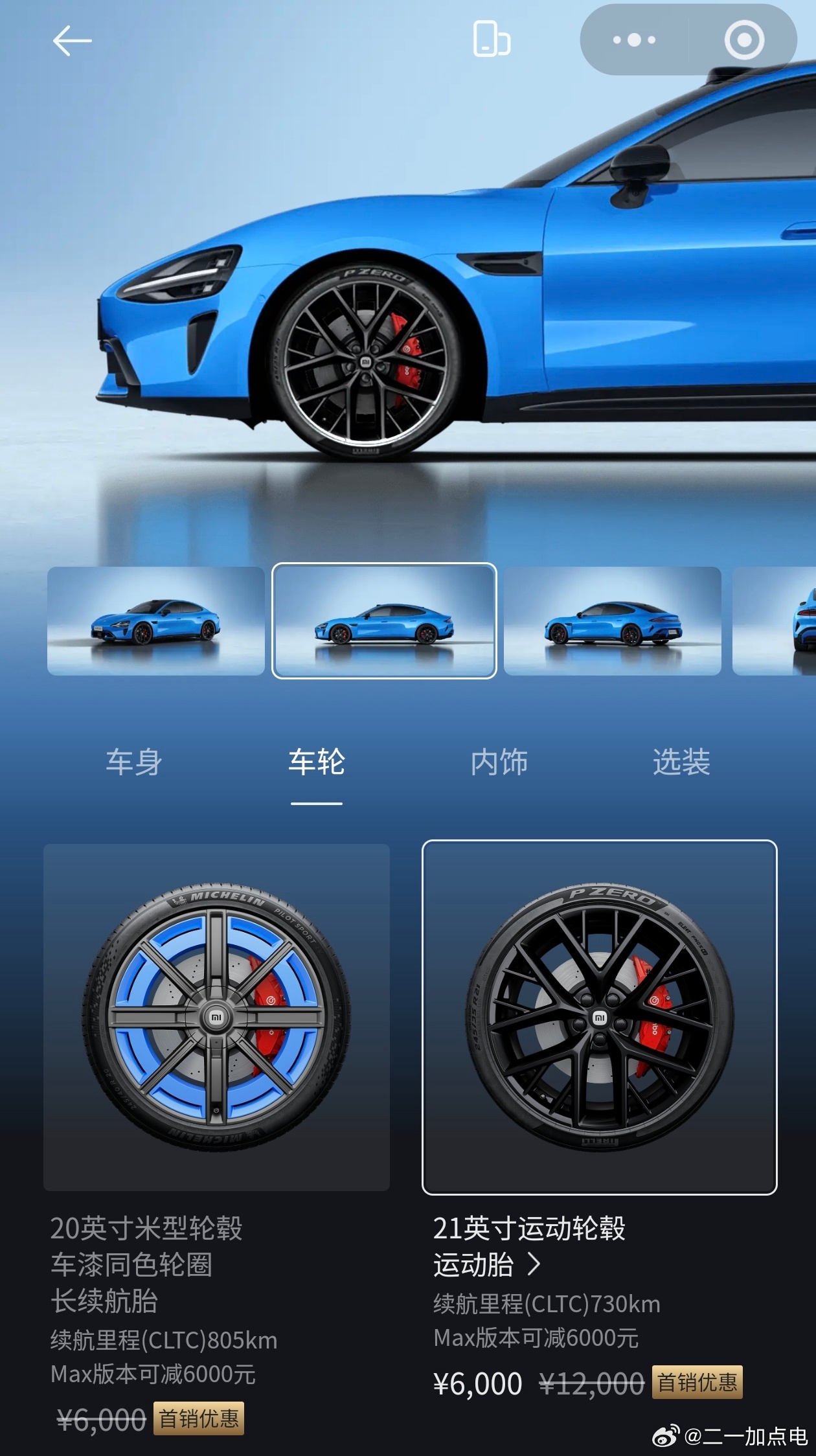 个性选装方面,我肯定推荐广告色了,就很买苹果一样,你不买新一代专属颜色,谁知道你开的是新款,21寸的这个轮毂蛮帅,但是那个3000的轮毂内饰套装就有点难蚌了,有点玩具感。