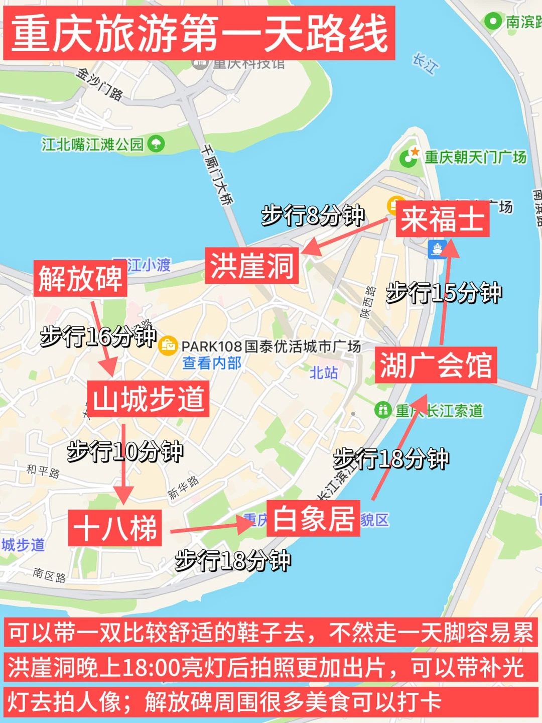 1⃣️号线景点:解放碑,洪崖洞,两江小渡,长江索道,湖广会馆,白象居