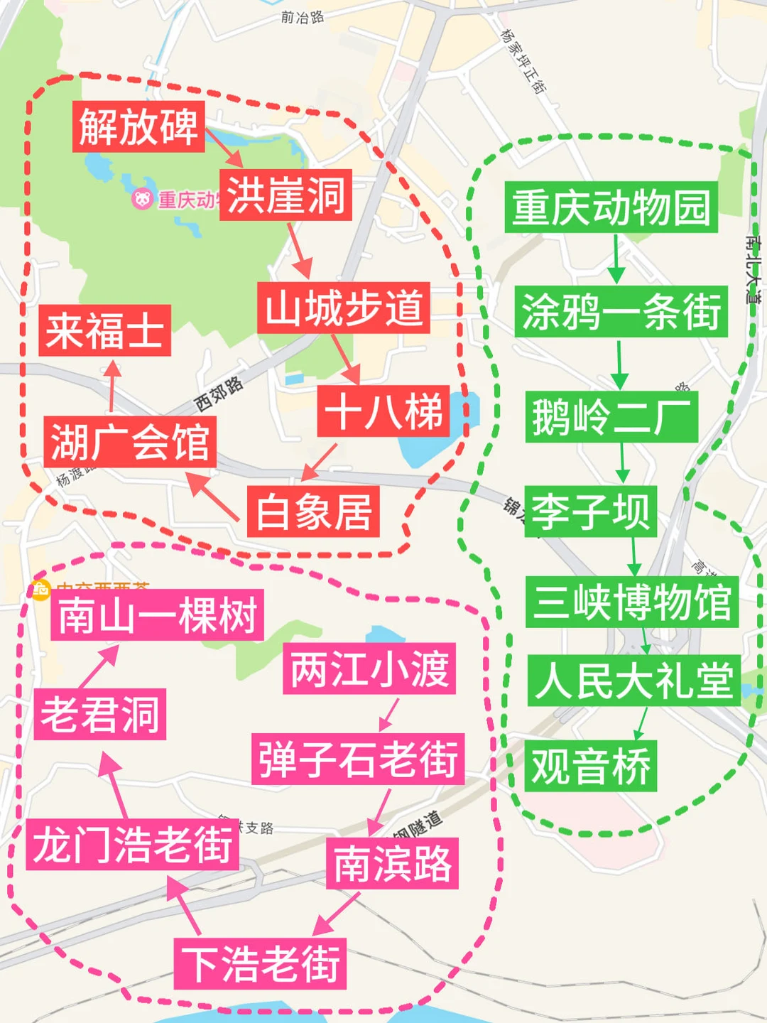 3⃣️号线景点:观音桥,北仓文创街区,塔坪社区,九街