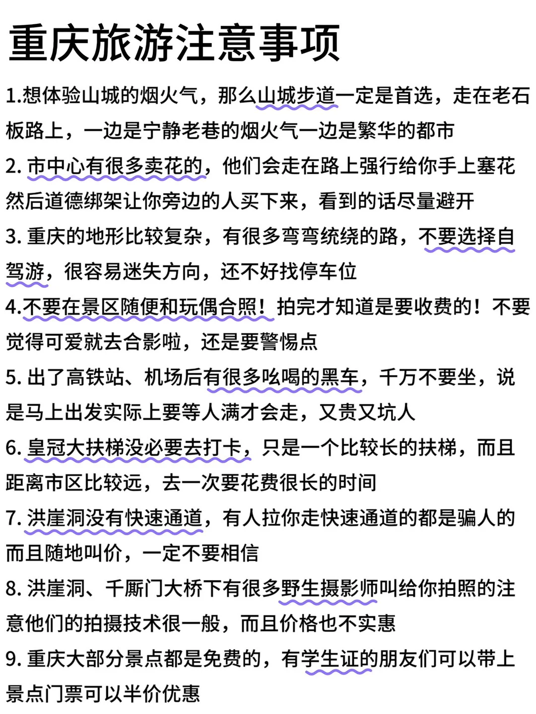 经验证明…真的不能不做攻略来重庆了❌太容易踩雷了啊,昨天熬夜整理了一些重庆旅游干货和一些旅游注意事项放在图上了,大家来之前建议先看‼️真的很有用!可以先存!