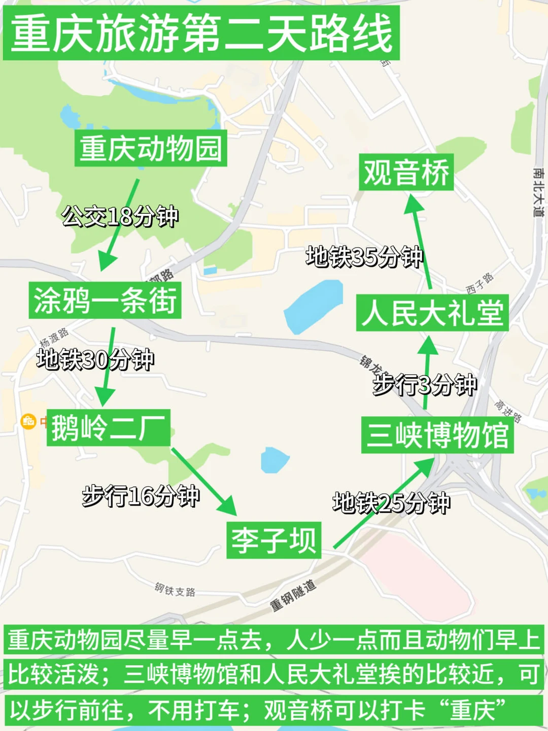 2⃣️号线景点:李子坝,重庆动物园,钟书阁,交通茶馆,涂鸦一条街