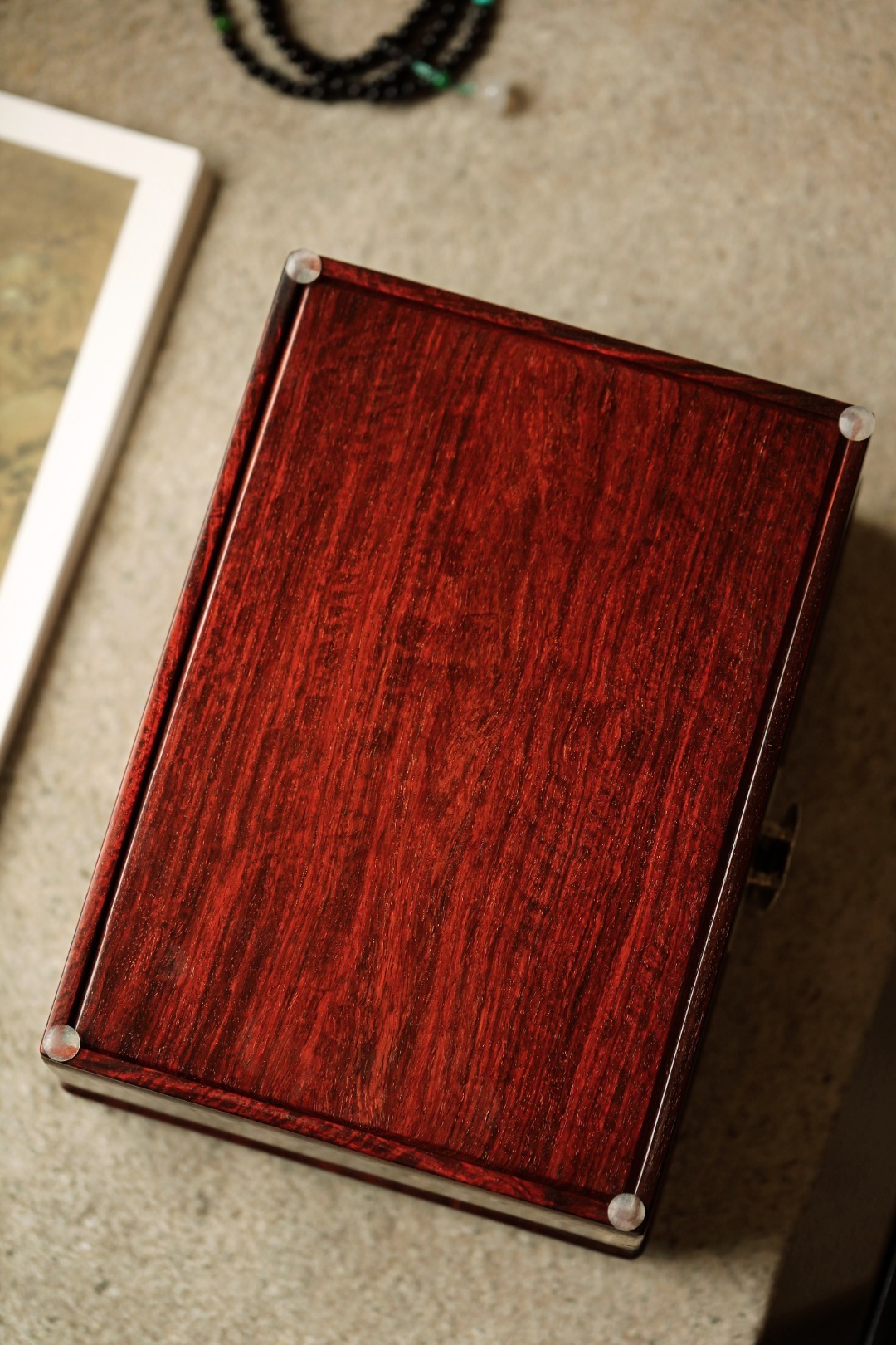 紫檀x百宝嵌【玉堂富贵】首饰盒小叶紫檀独板老料制,全独板榫卯结构,百宝嵌花鸟图案