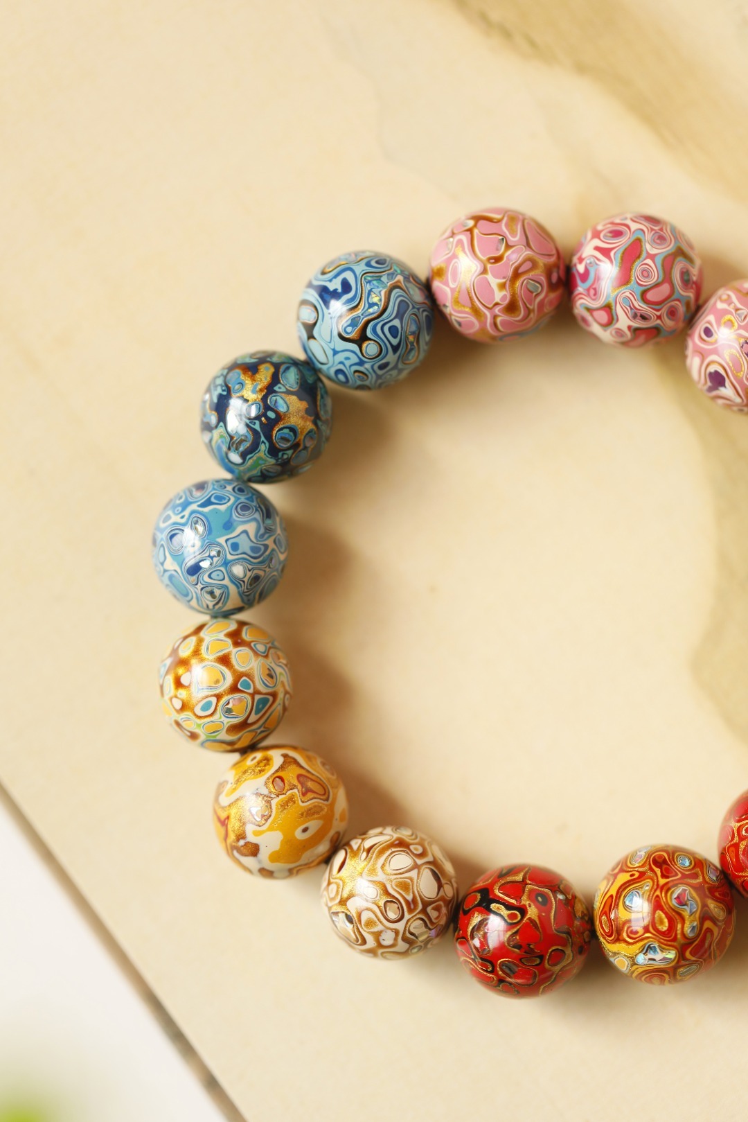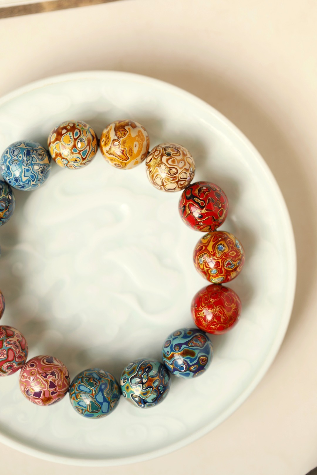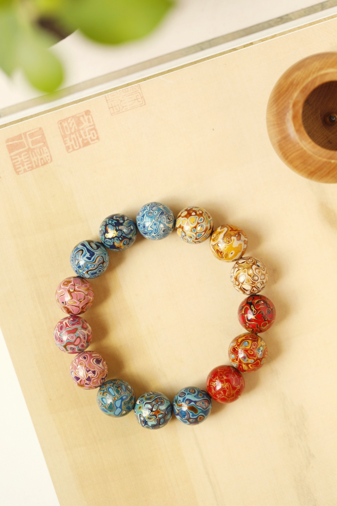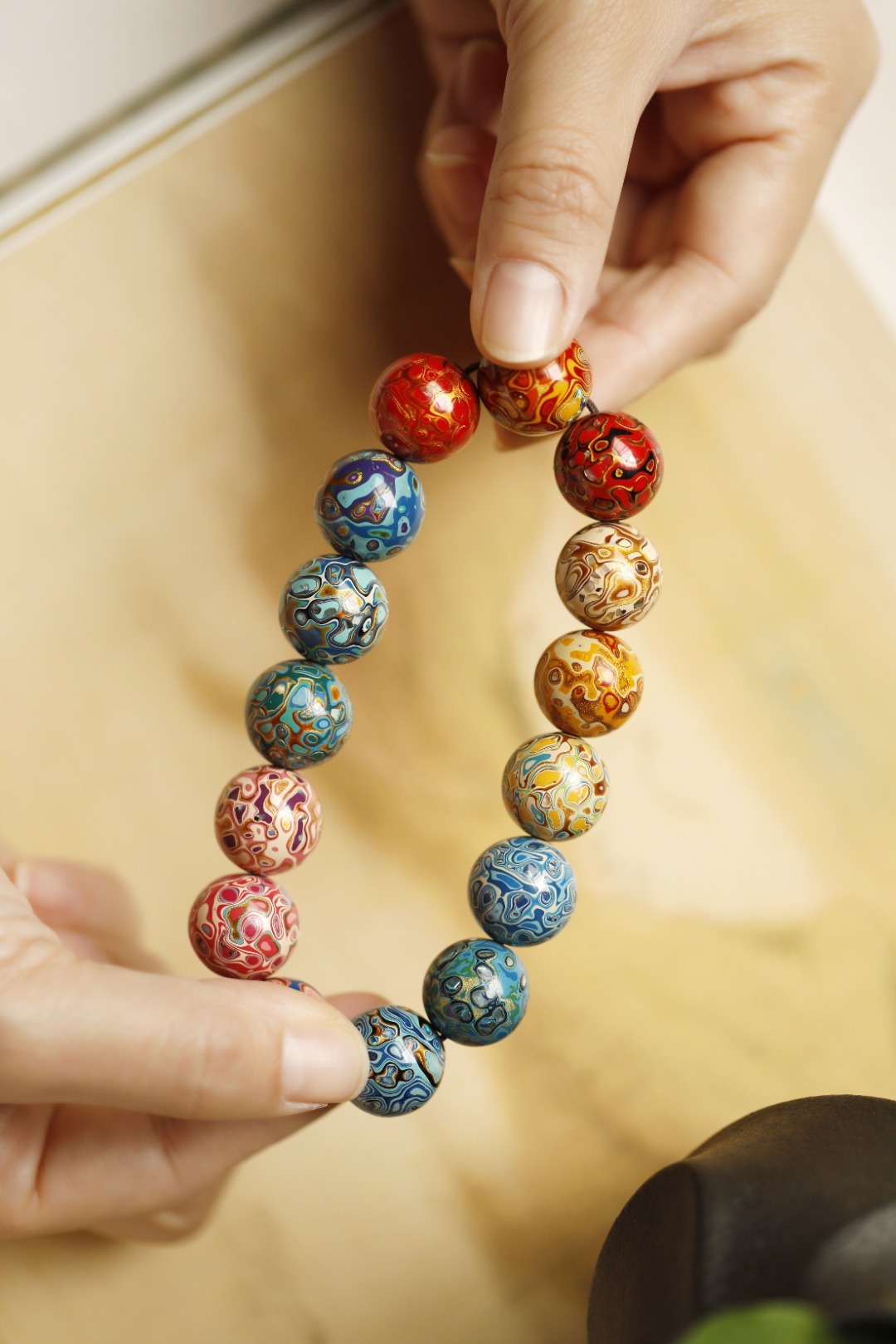 多彩 大漆珠15mm手串传统大漆工艺,肌理如水墨画,纯手工十数层的反复髹漆;色彩