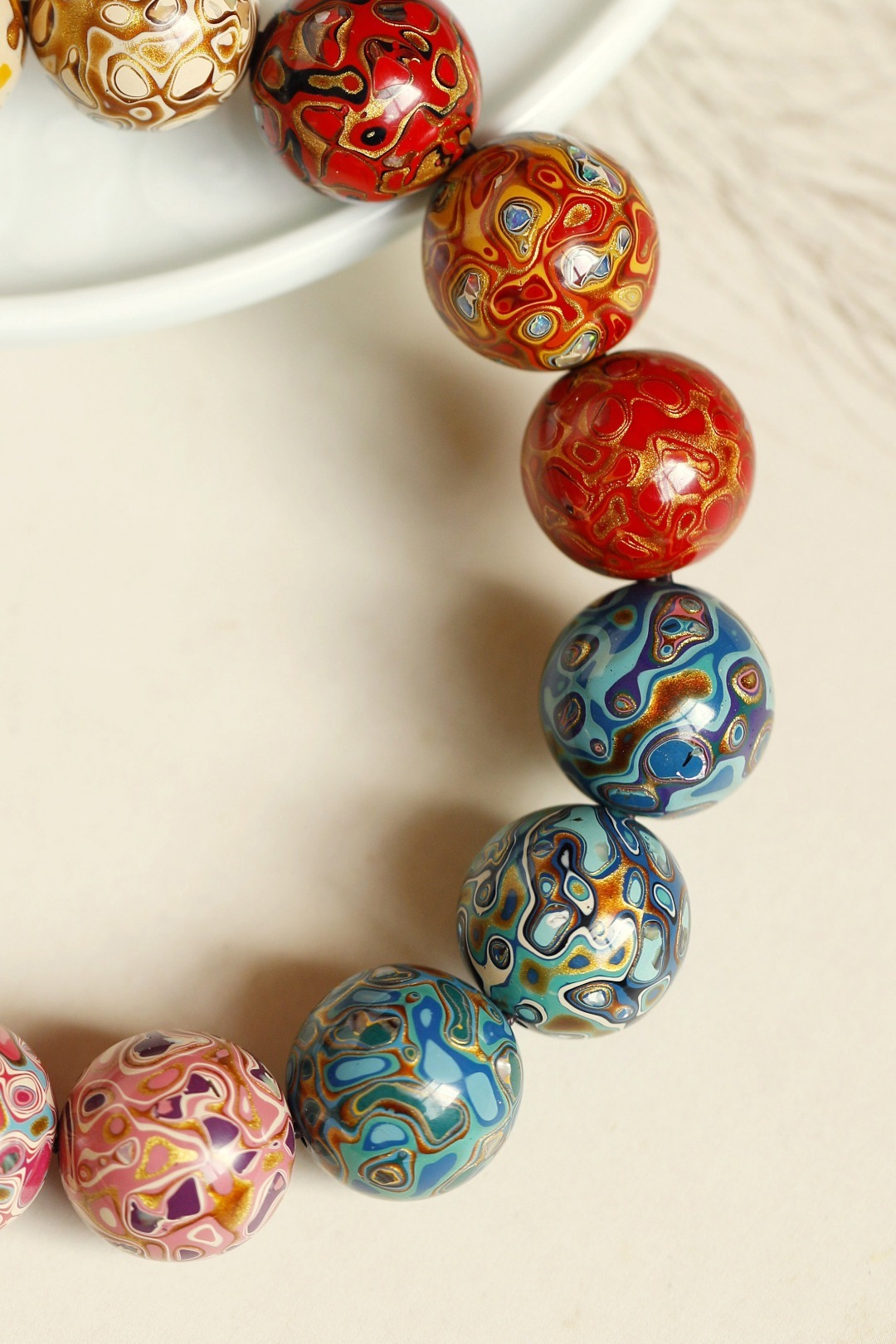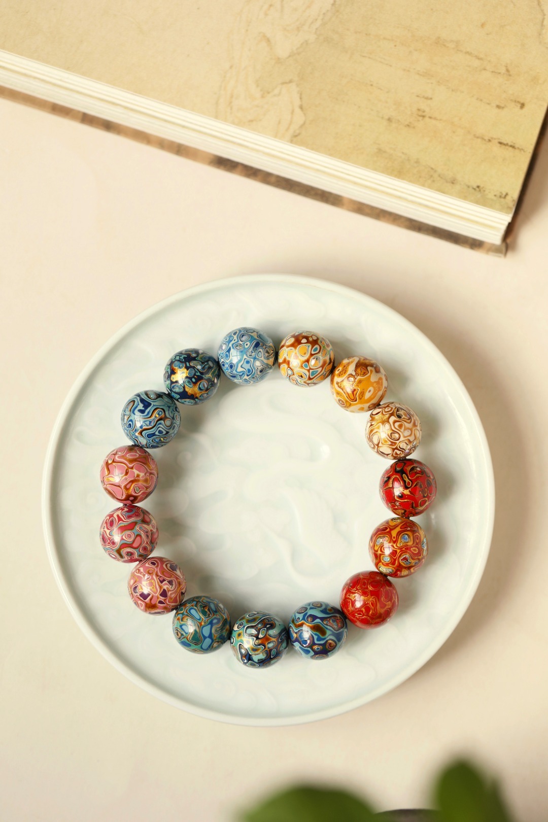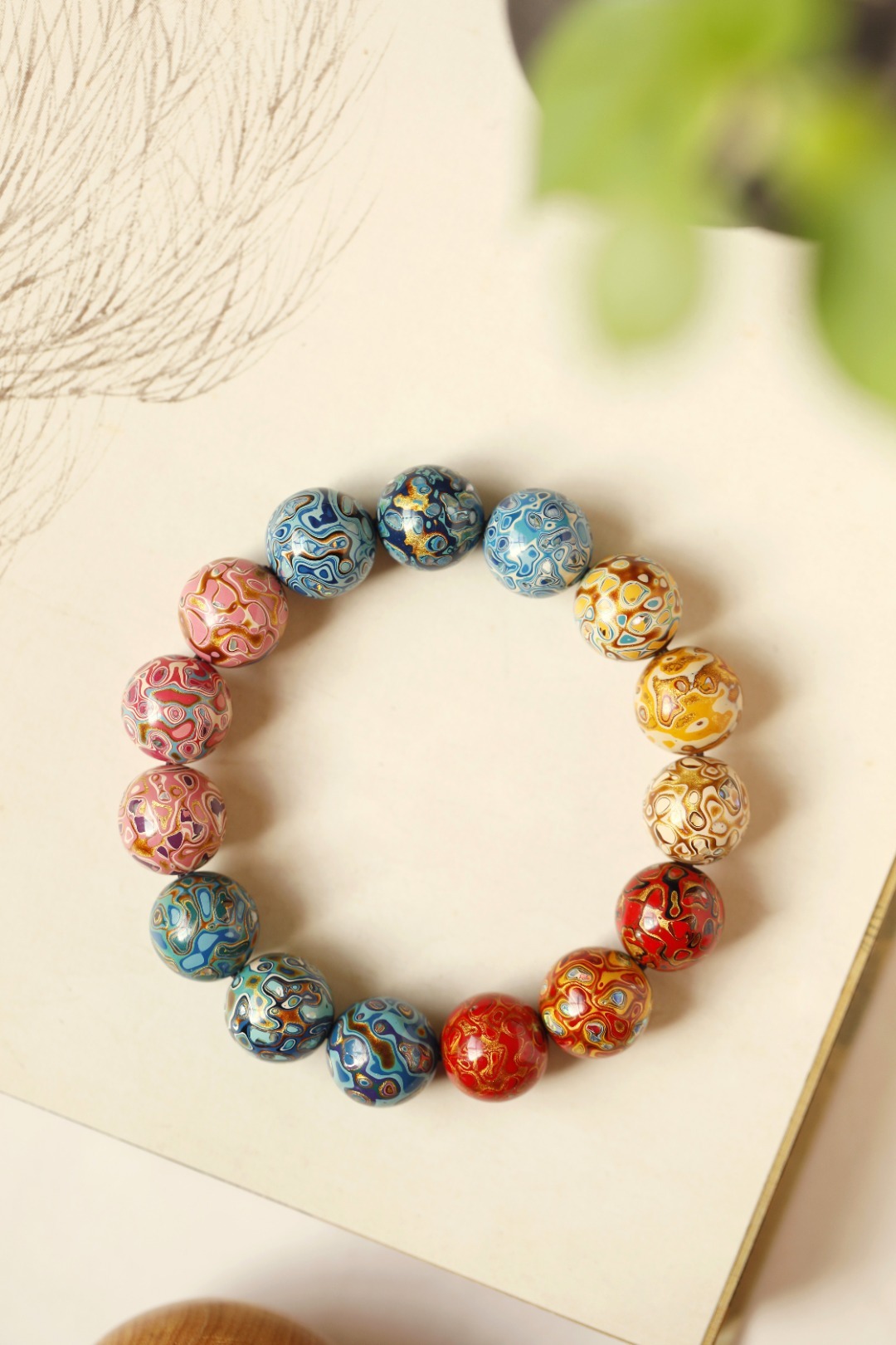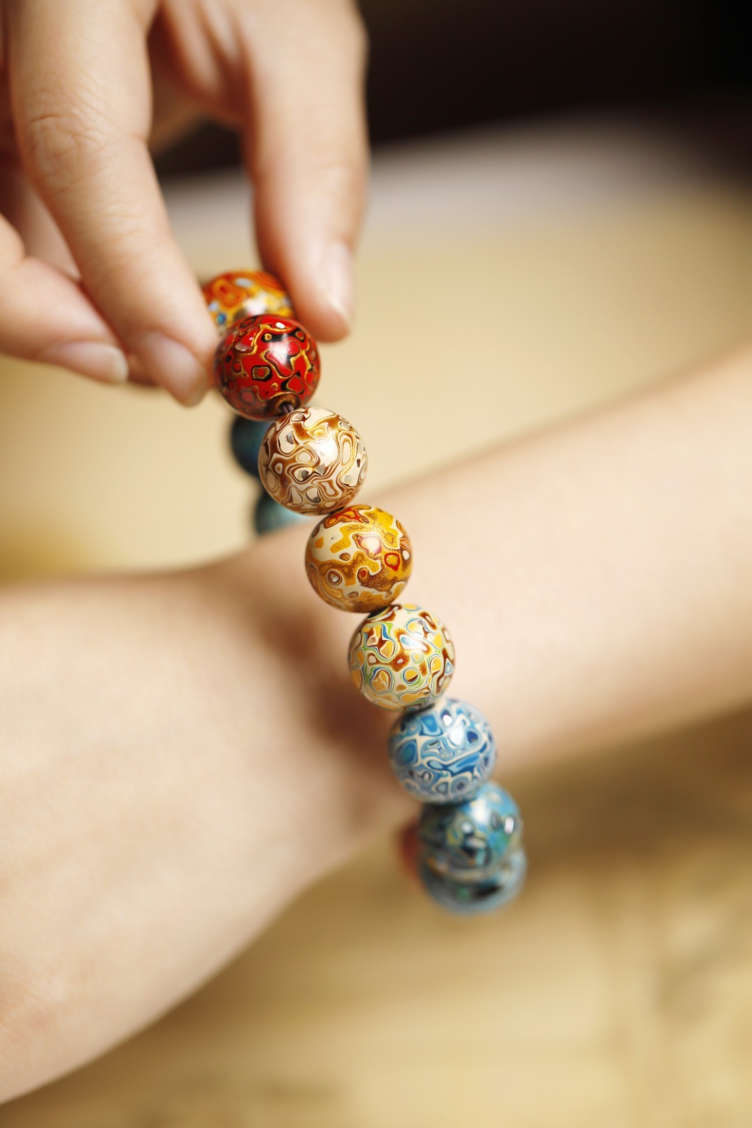 多彩 大漆珠15mm手串传统大漆工艺,肌理如水墨画,纯手工十数层的反复髹漆;色彩