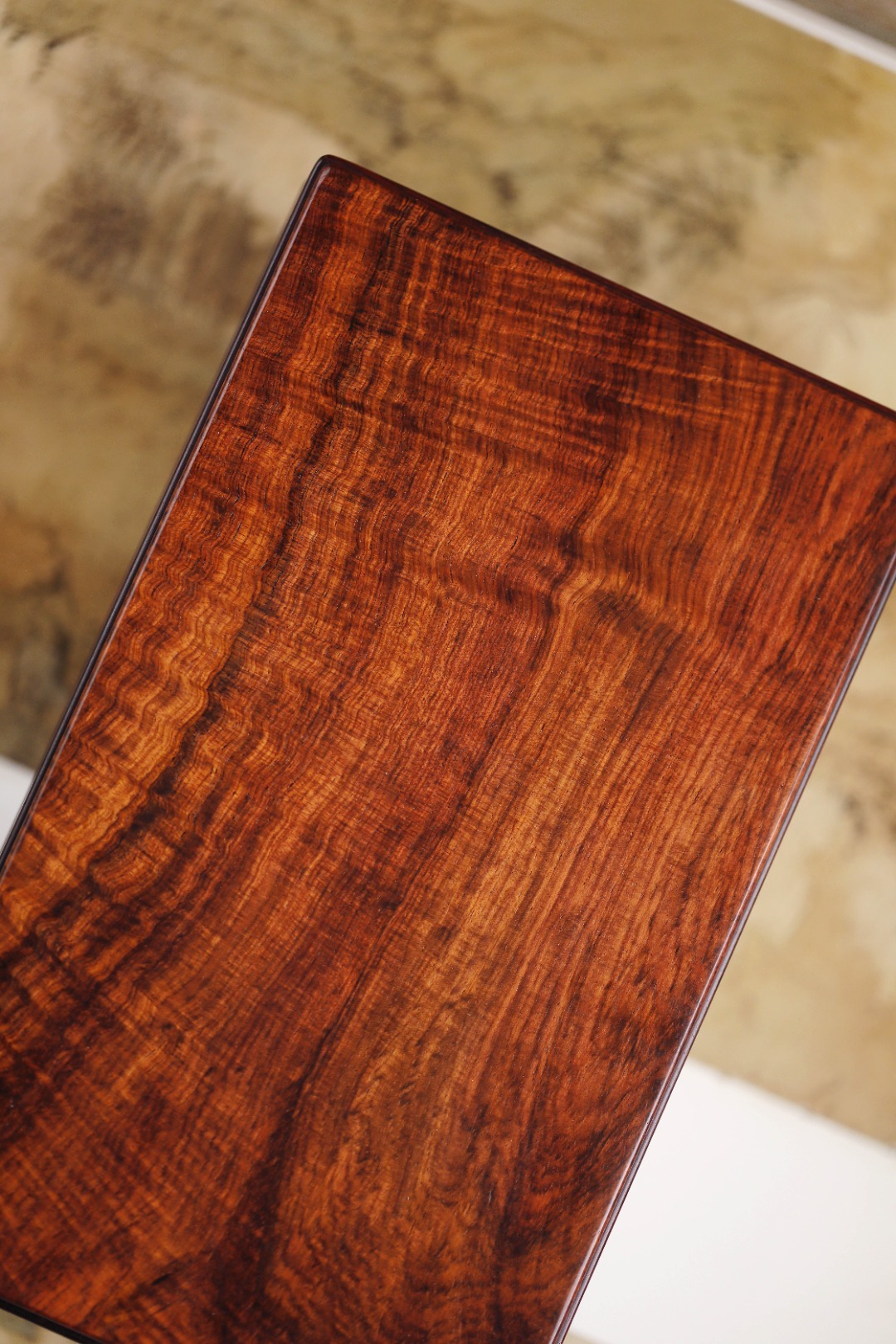 紫檀之深沉,黄花梨之明快,榫卯结构,水波纹理闪烁浮动,木中之王碰撞在一起,创意独特,与众不同。
