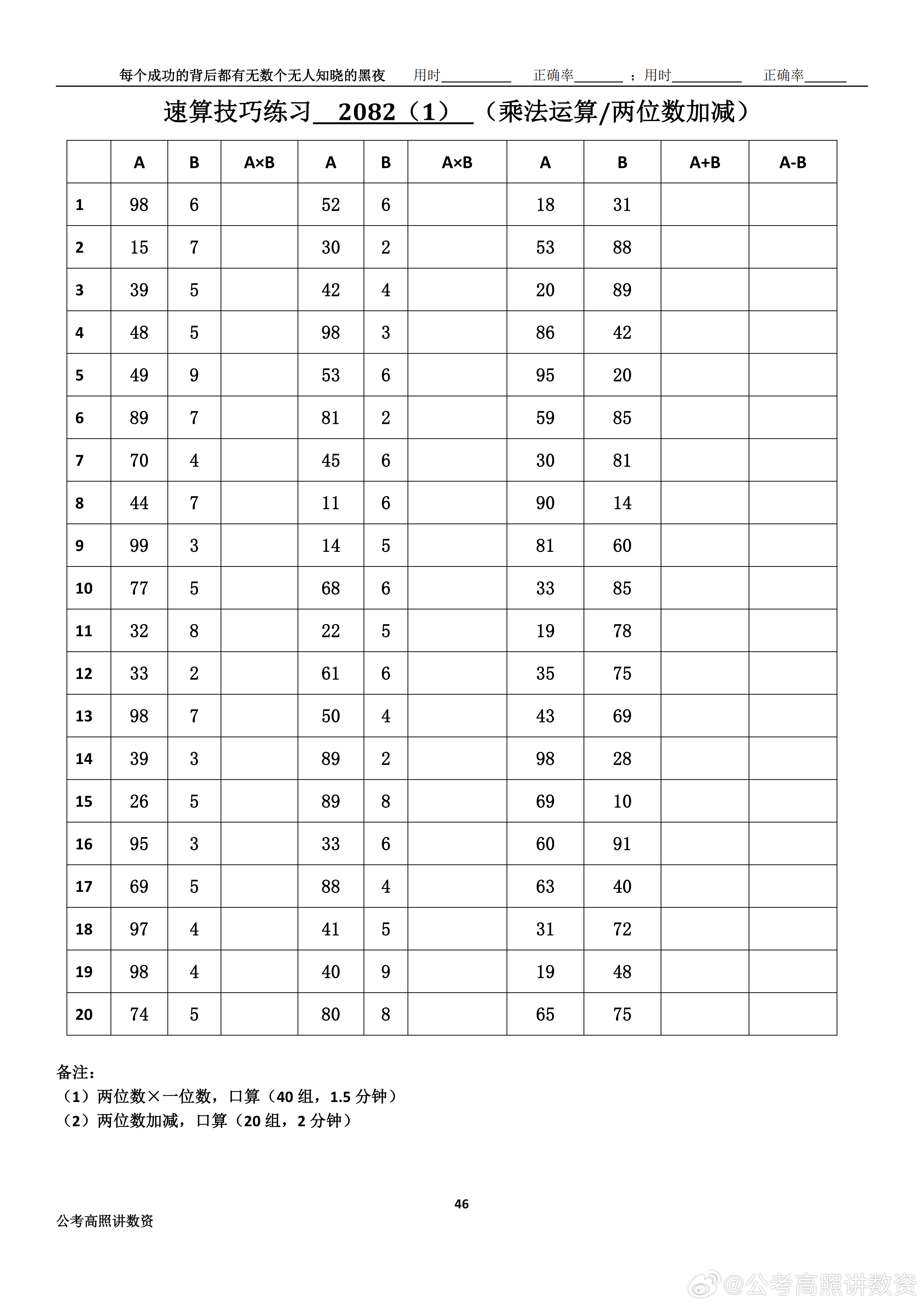 跟着高照练速算决战公考 速算练习2082相信自己,努力学习。速算链接汇总:网页