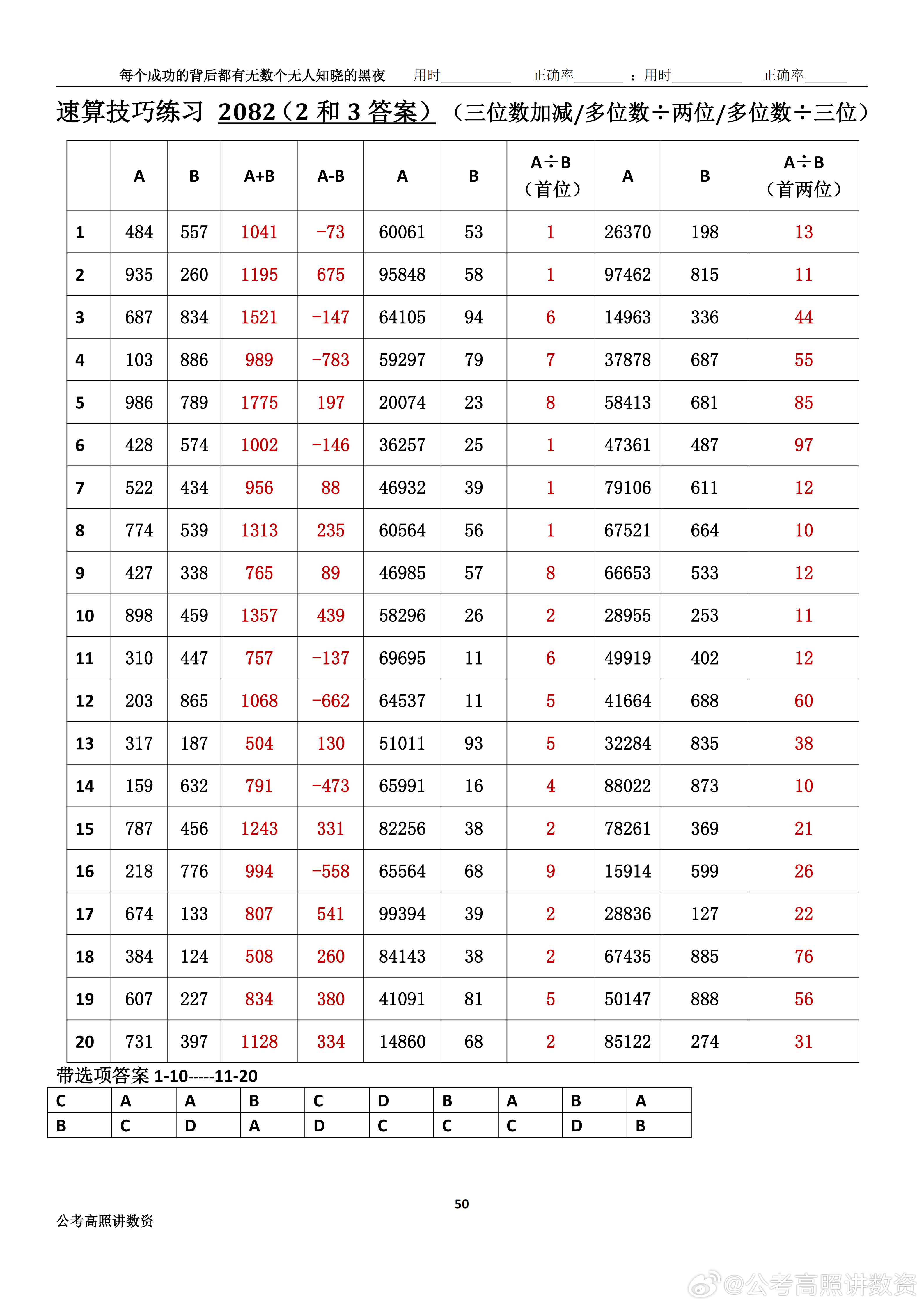 跟着高照练速算决战公考 速算练习2082