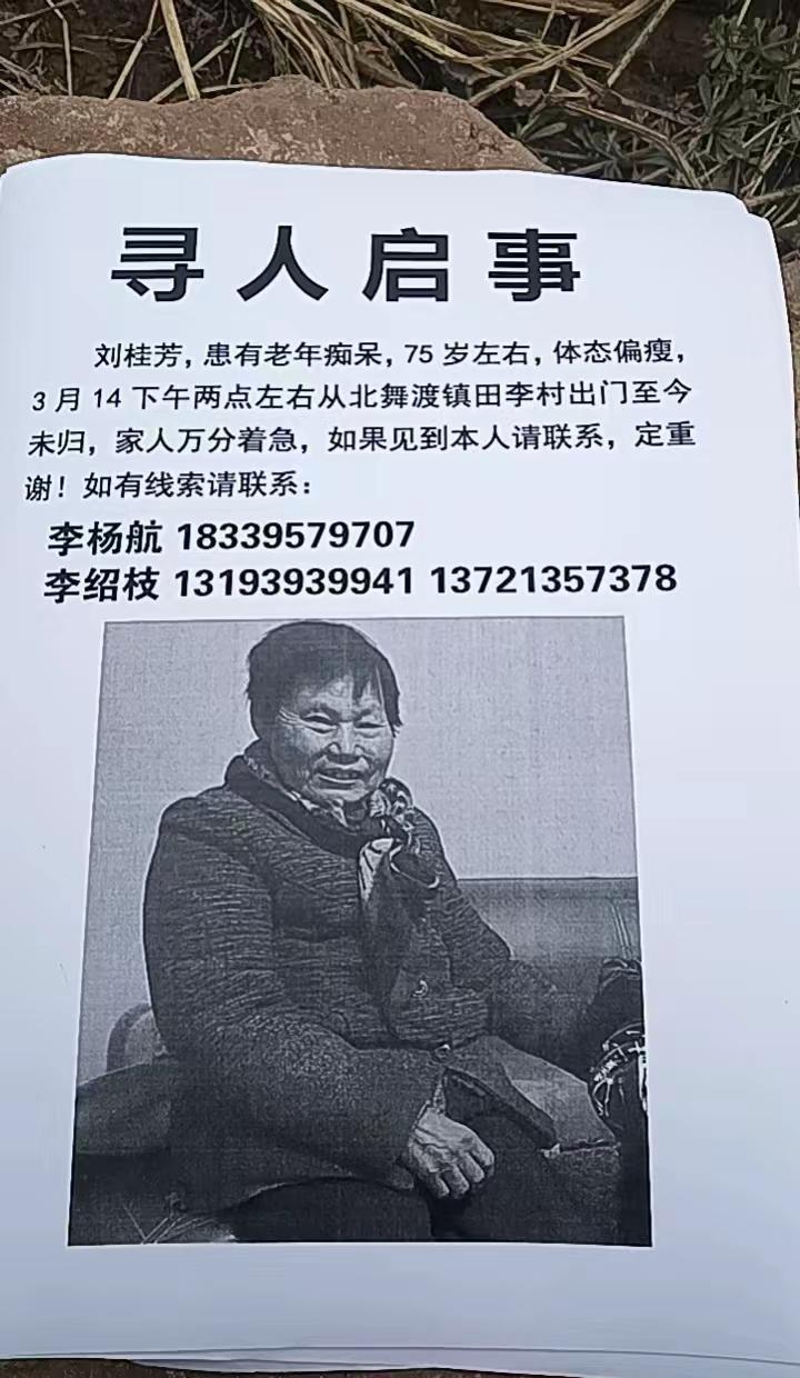 舞阳县神鹰救援队。河南省舞阳县北舞渡镇田李村171号 14号下午2点出门至今未归