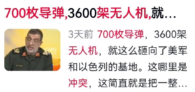 700枚导弹3000架无人机:这不是冲突,是财富粉碎机 一晚上倾泻700发导弹、3000架无人机,打到第56轮,早已不是局部摩擦。网友高呼“仗义出手”,却没算过一笔账:这一夜消耗,是普通家庭几辈子的积蓄。 现代战争本质是“烧钱博弈”,单枚导弹造价千万级,几轮下来足以拖垮一个国家的财政。距离不再是护城河,战火不分国界。 把战争挡在国门之外,才是最高级的战略。和平不是理所当然,而是无数人守护的结果。与其空谈热血,不如珍惜当下的太平岁月。 对此,你怎么看? 标签:战争经济学 和平无价 祖国统一