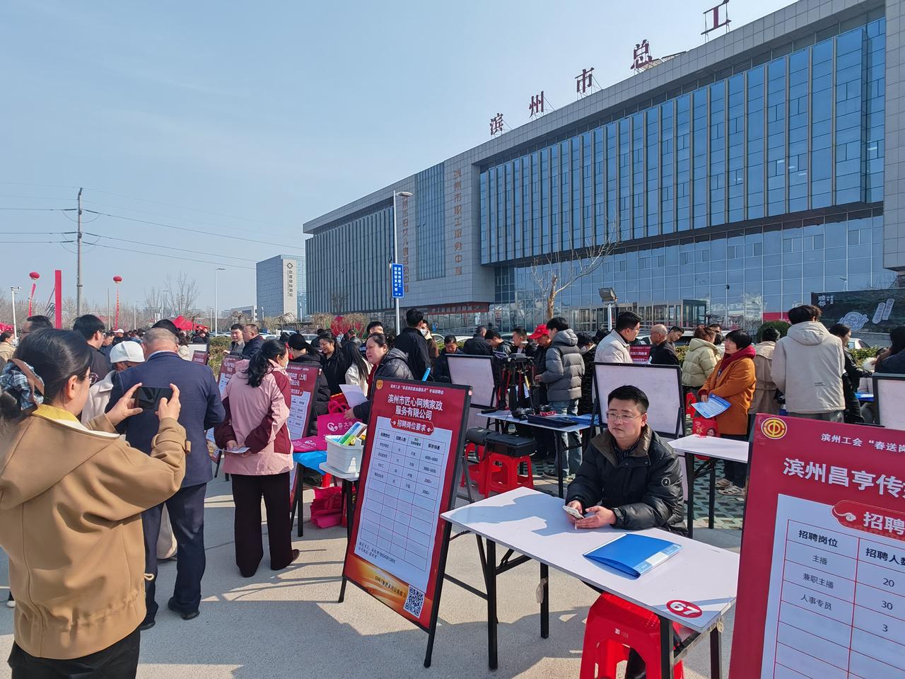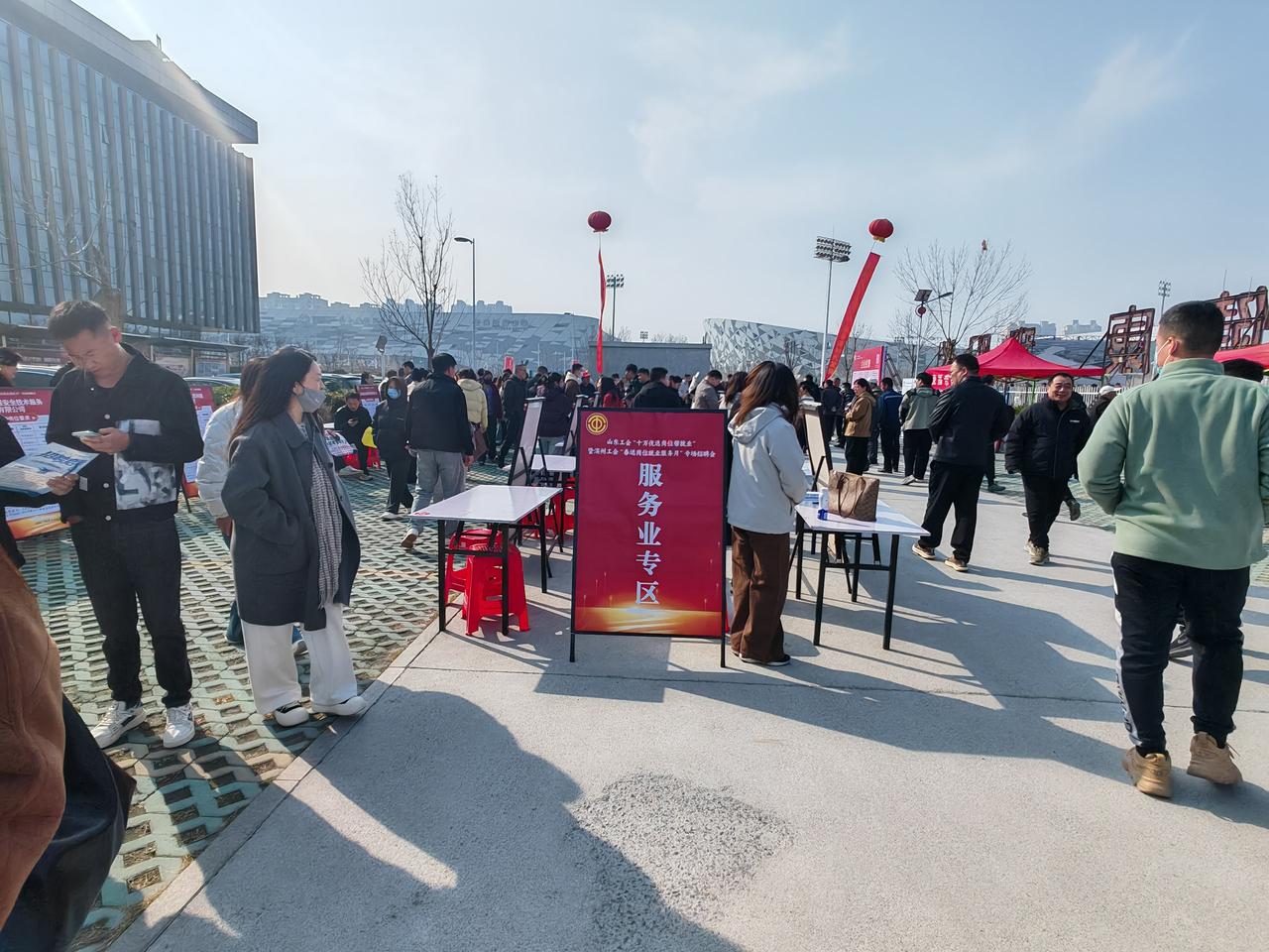 市工会提供大量岗位,现场招聘中。黄河十二路市工人文化宫西邻。好岗位还不少,可以试试。现场已经人山人海了!