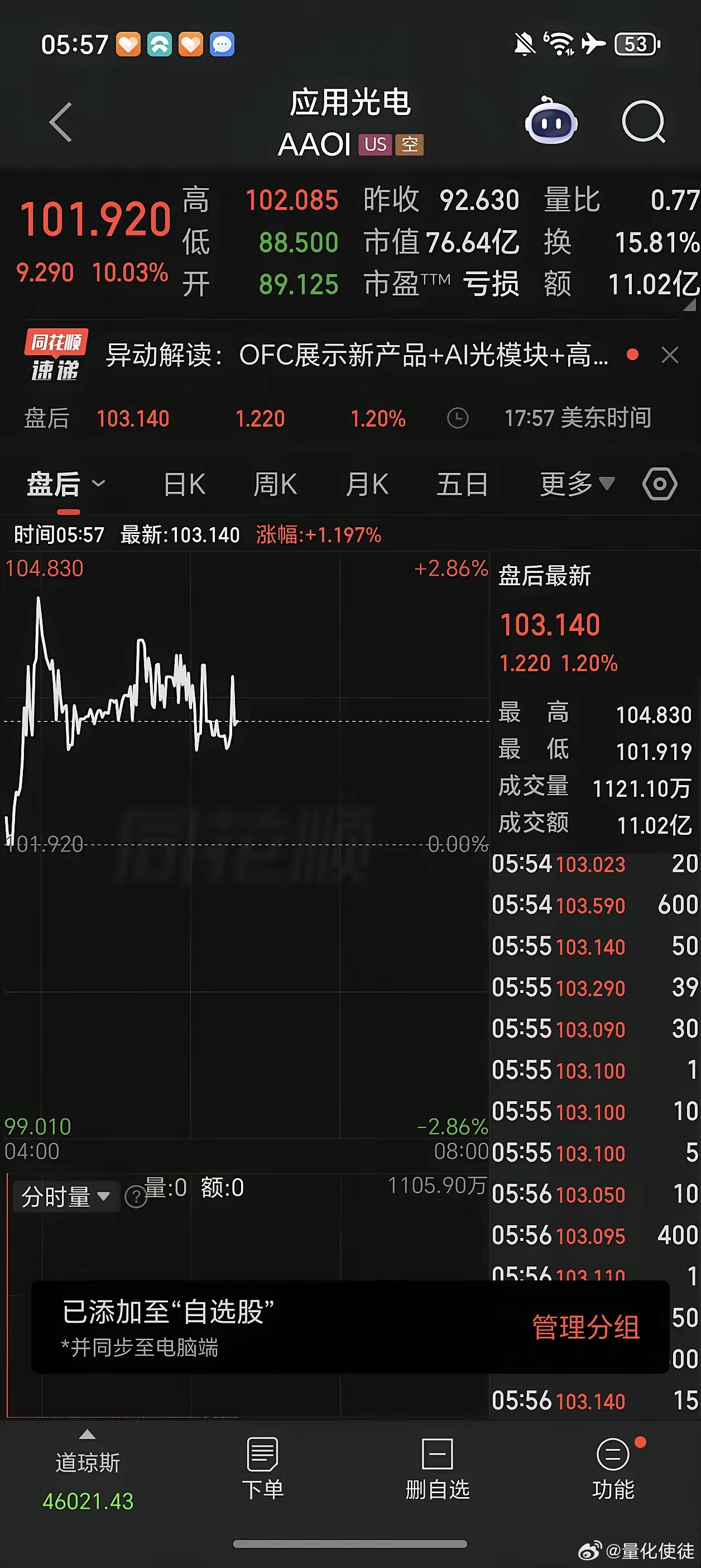 昨晚美股光模块都是大涨的,今天A股跟不跟?历史数据表明,大概率是要跟的。昨天刚结束的OFC大会上,关于技术突破、产能提升以及市场需求方面的利好密集释放了不少,从美股光模块的逆势上涨来看,市场是选择了相信!当下来看,就确定性而言光模块依然无可替代。因此,如果实在不知道买什么,就买光模块的核心标的大概率正确!
