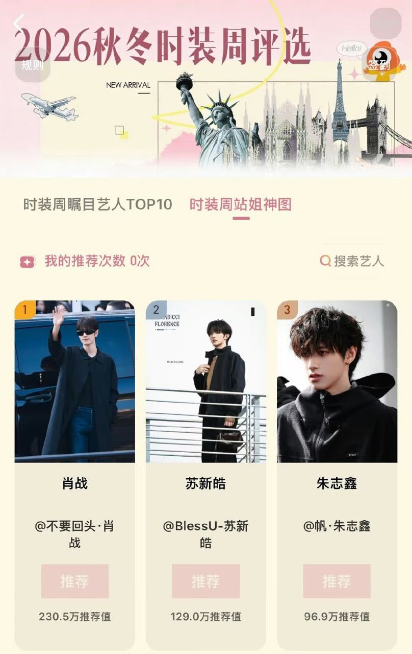 tg时装周站姐神图投票 每天投票清零 朱志鑫家一周时间只能投出100w左右的票