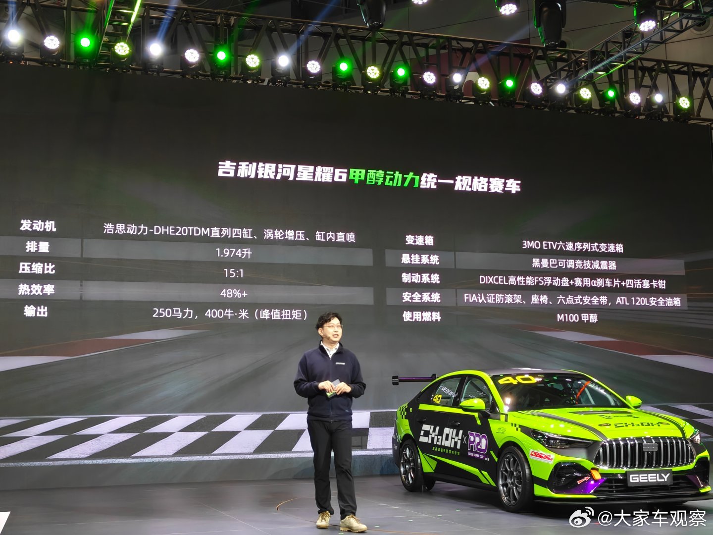 今年超吉联赛,吉利为了响应环保,可持续发展,推出了全新的甲醇动力赛车,燃料运用m100的 100%甲醇,排放只有水和少量一氧化碳,几乎没有颗粒物排放,车手马青骅说甲醇动力产生的尾气甚至有点香