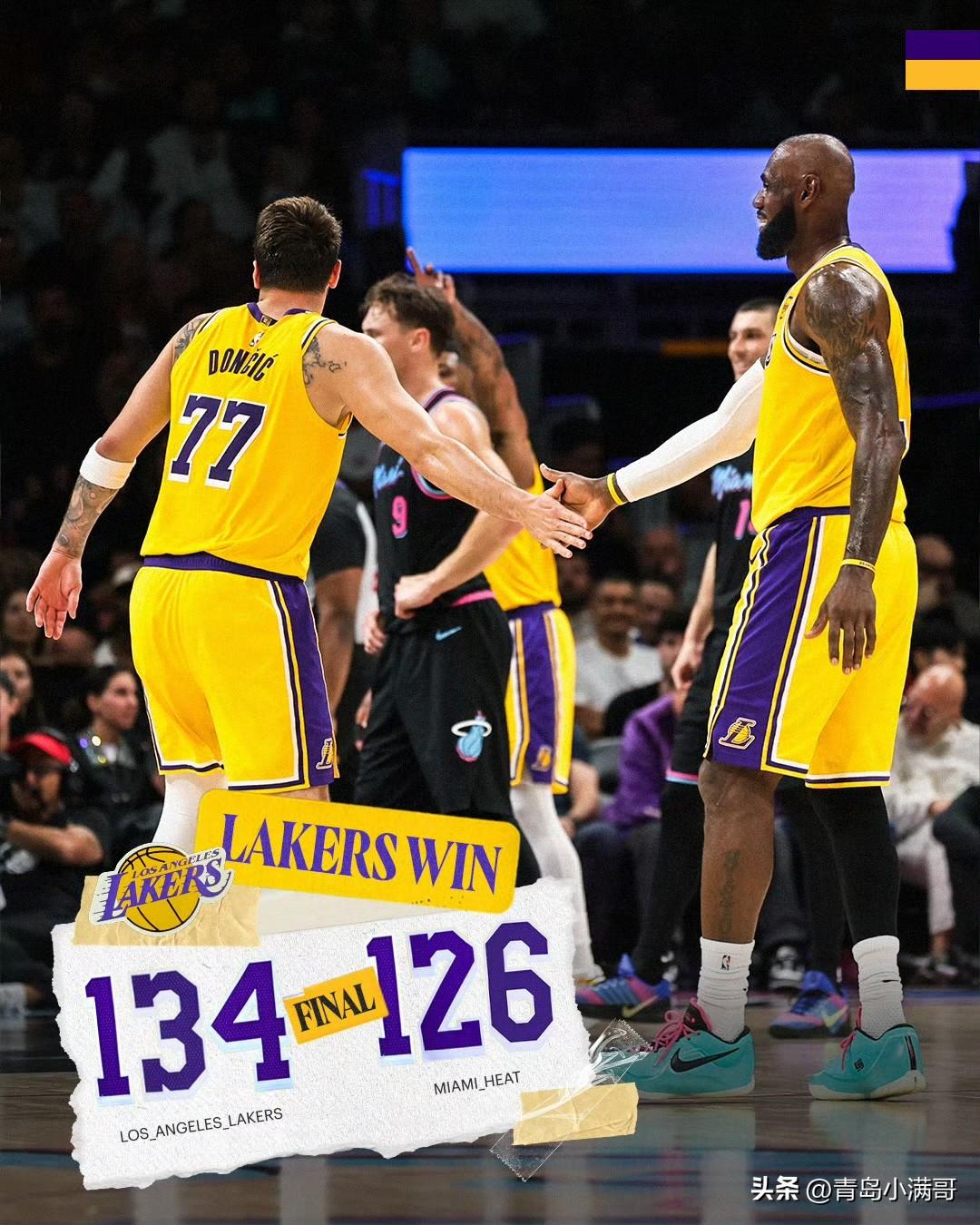 根本挡不住!!!湖人逆转热火迎八连胜,东契奇60分杀疯了! 在上午刚刚结束的一场比赛中,最终湖人在客场以134-126战胜热火队,喜迎八连胜,湖人最近气势汹汹,根本挡不住,再次验证了东詹组合还是最强的。 湖人目前是东契奇的球队可以接受,湖人目前的进攻核心是东契奇和里夫斯,也是管理层的目标,但是詹姆斯是为湖人拖底的那一个,最近两场里夫斯手感都不加,但是詹姆斯用一场超高命中率的30+和一场三双配合东契奇杀遍对手,湖人的状态已经来到了最佳。 本场比赛,东契奇爆砍60分,单场命中9记三分,外加15个罚球,在近期刚刚拿到83分的阿德巴约身上游刃有余的得分,没有人能拦得住他,算上上一场他的40分,东契奇在这么短的时间内就完成了两场比赛100分的壮举,东契奇用进攻说话,真的杀疯了。 恭喜湖人队,下一场本周日早上7点对阵魔术,后面还有三个连续客场,接下来他们会表现如何呢?湖人 詹姆斯 东契奇 洛杉矶湖人