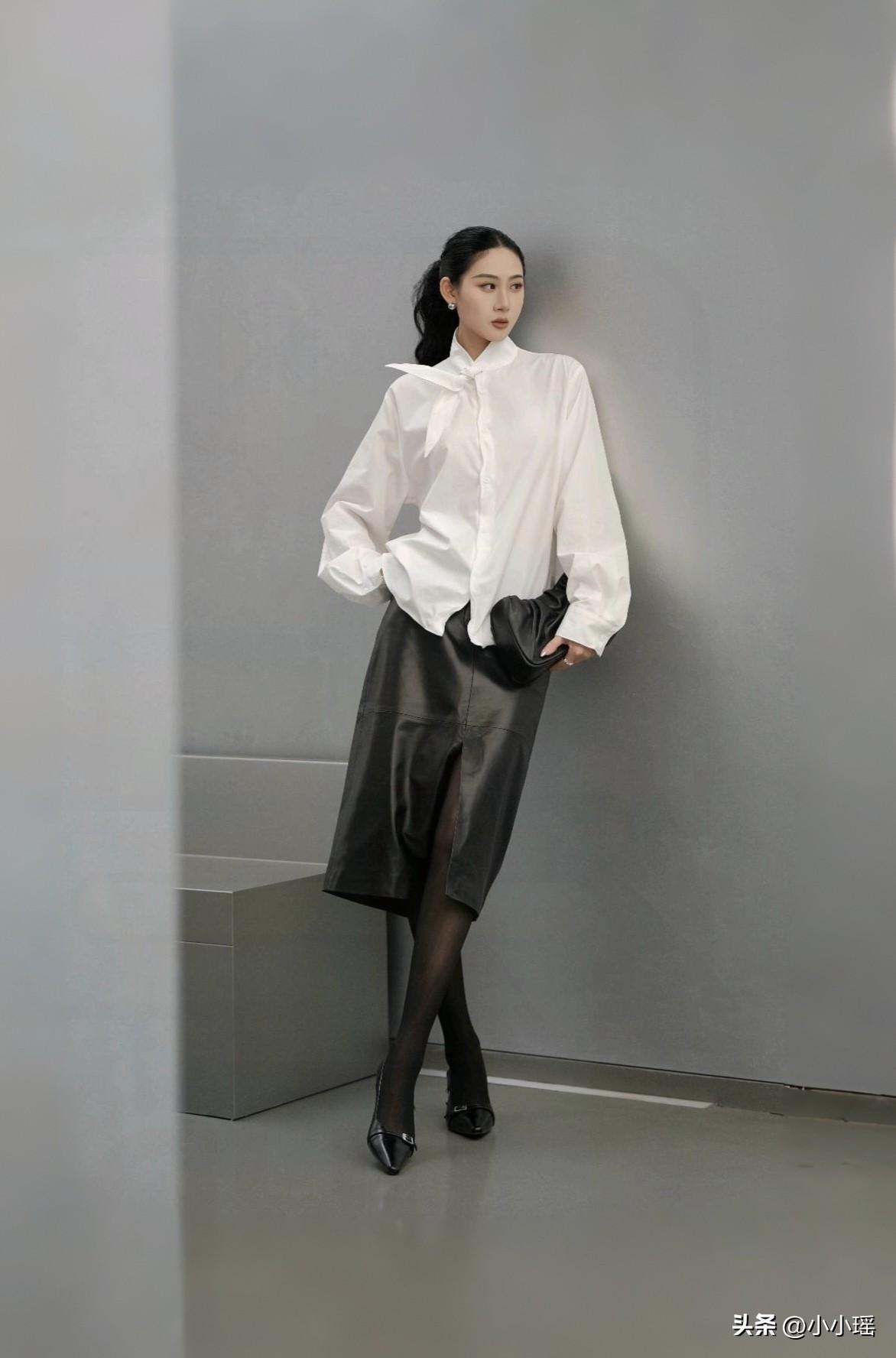 分享ootd穿搭 春日温旭,微风柔和。商场来一发,白色衬衫配皮裙,皮质黑丝细跟高跟,无不彰显女人范,你觉得这套装扮如何?职场黑丝穿搭 黑丝酷穿搭 职场高跟穿搭