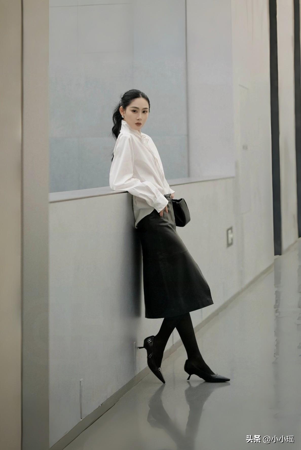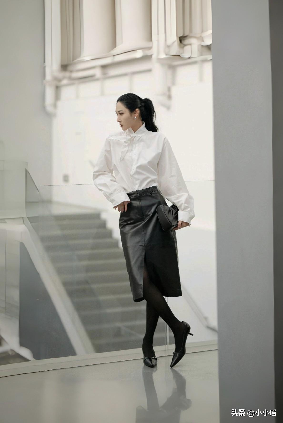 分享ootd穿搭 春日温旭,微风柔和。商场来一发,白色衬衫配皮裙,皮质黑丝细跟高