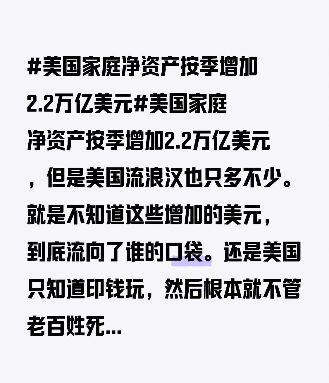 还是美国只知道印钱玩,然后根本就不管老百姓死活。当然,不管怎么样。都是美国人的事