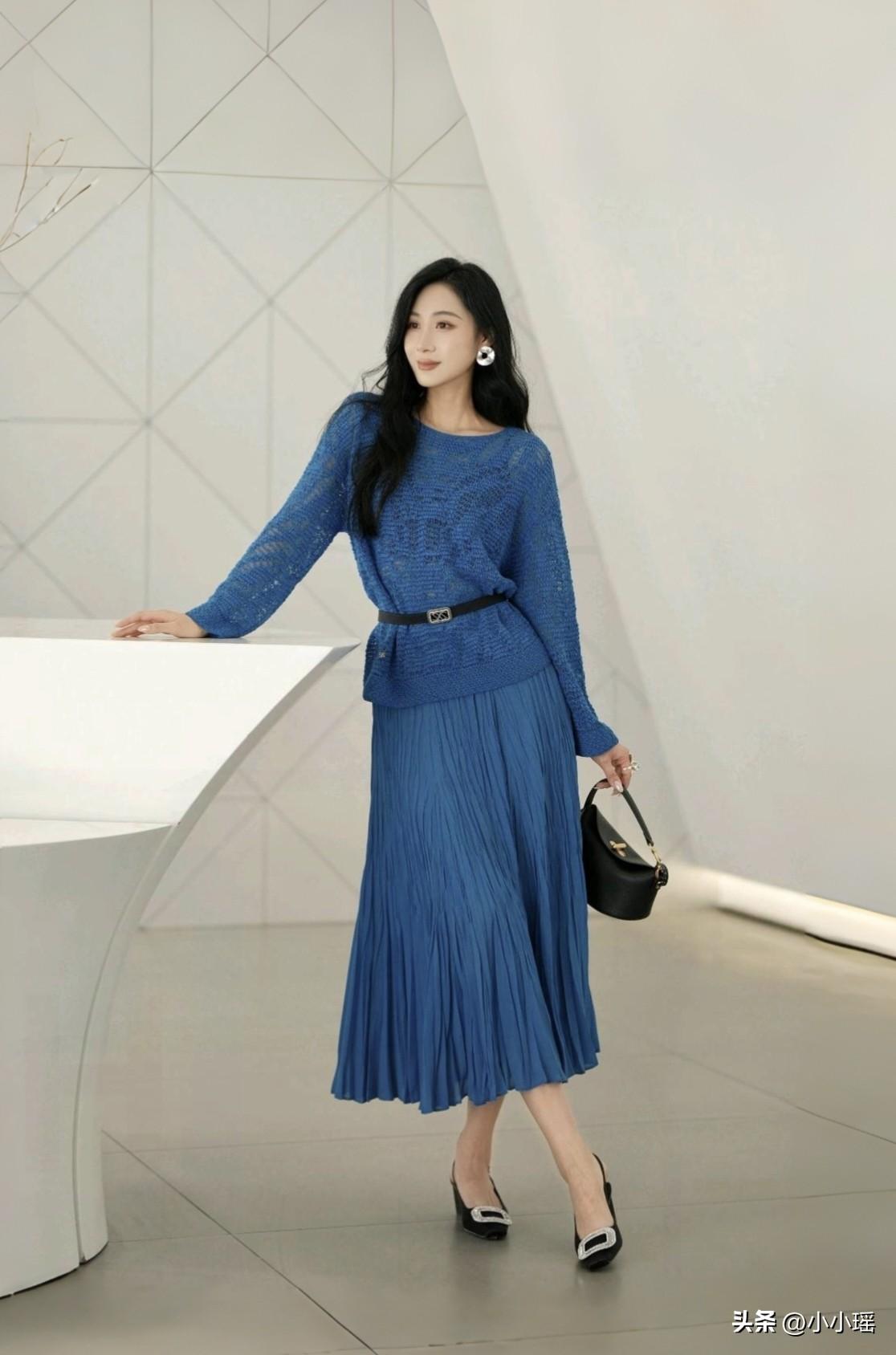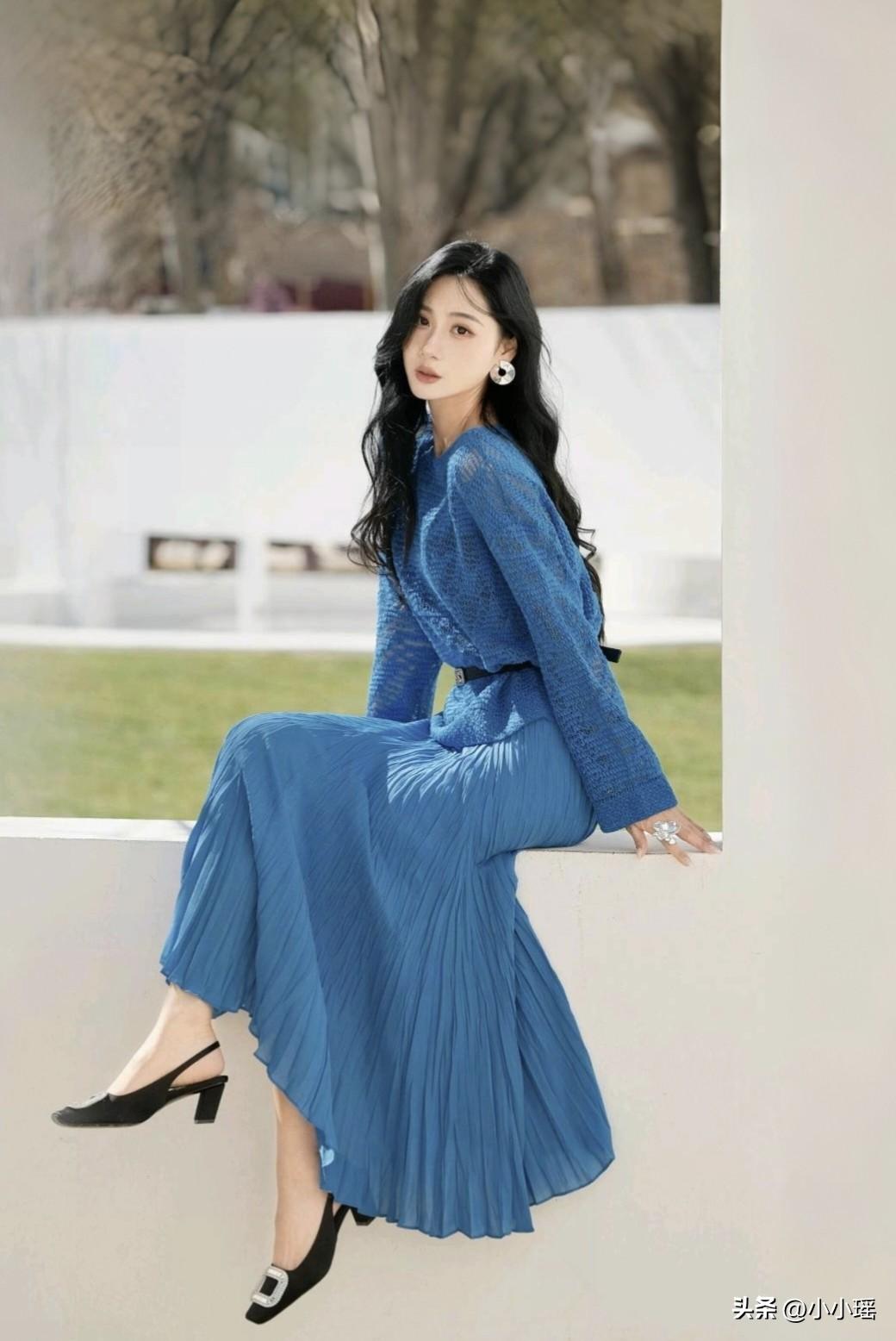 分享ootd穿搭 公园一角随拍,一席蓝色连衣裙,竟显妩媚,气质一下子拉满,你觉得