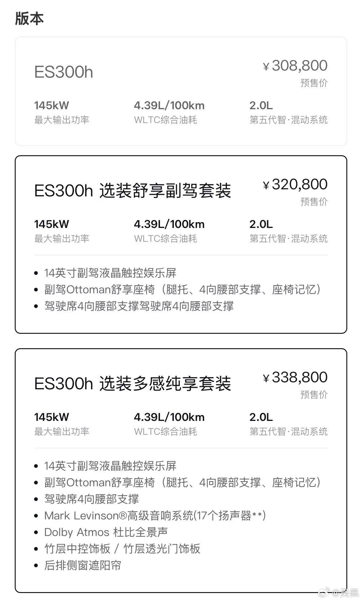 雷克萨斯的销量扛把子全新一代雷克萨斯ES开启预售,30.88万元买ES 300h,还有1.2万和3万的两个选装包。