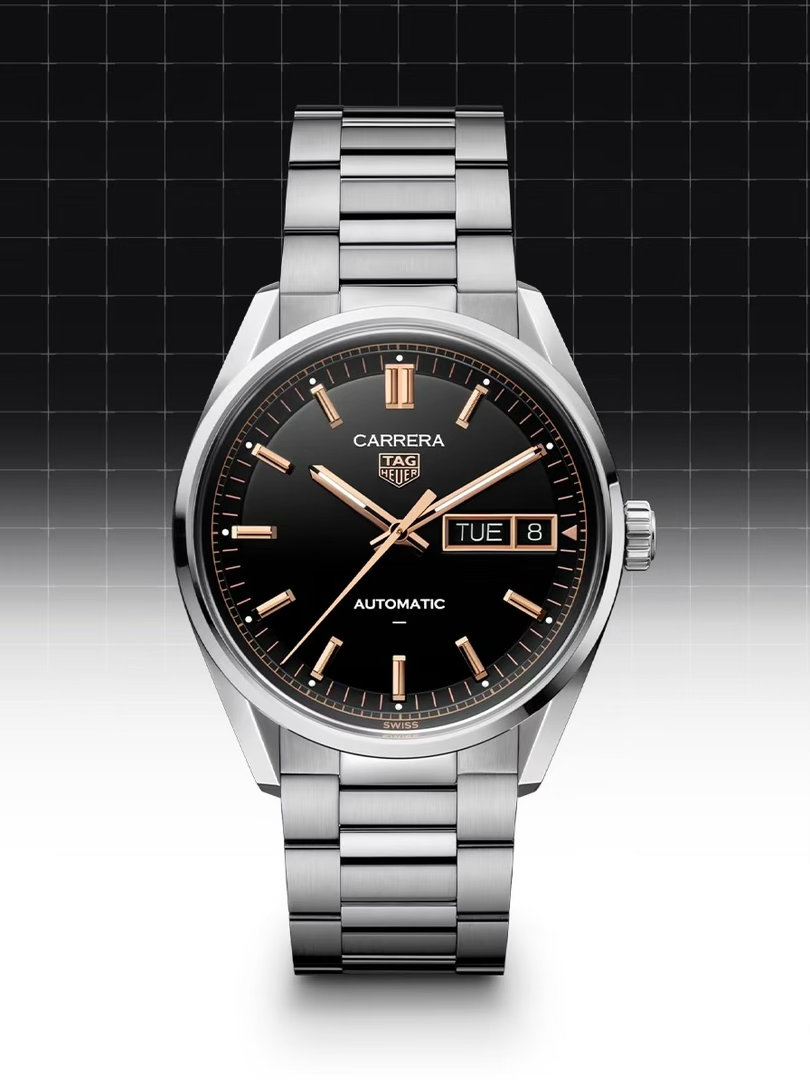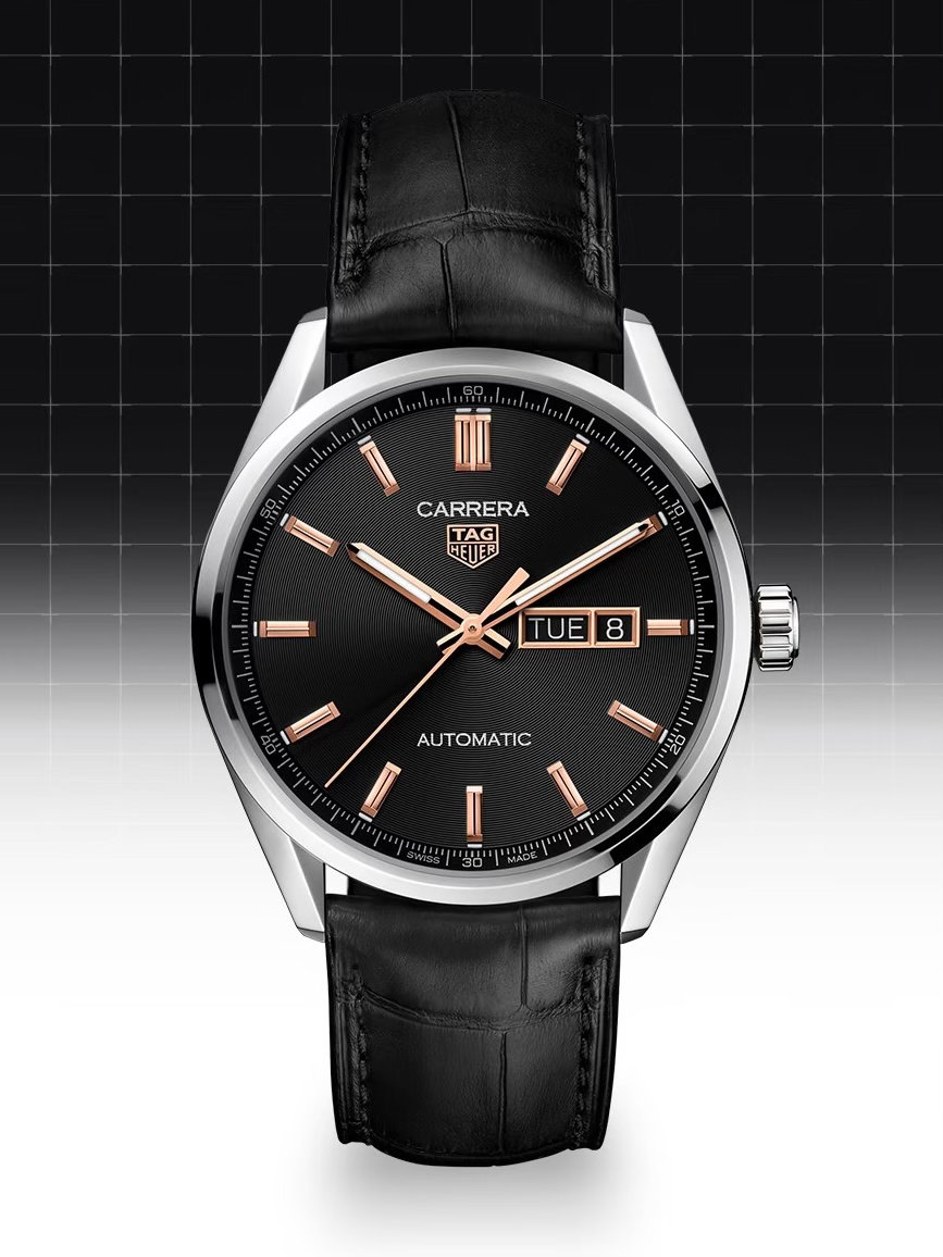 演员佩戴TAG Heuer泰格豪雅卡莱拉系列日历型腕表,在光影流转中定格其优雅而