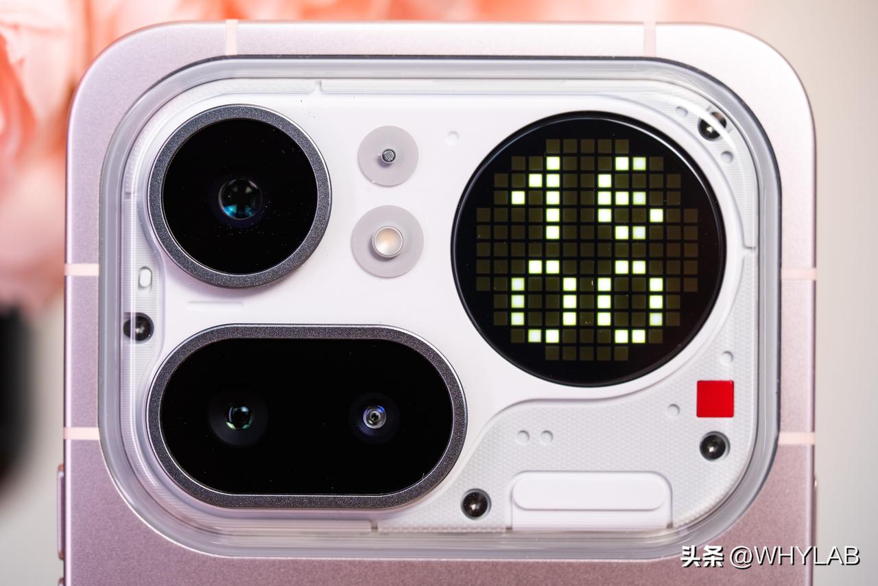 Nothing Phone(4a)Pro 真机图赏。说实话,外观创意这块 Nothing 一直很在线。 不规则镜头模组很有辨识度,旁边的 Glyph 矩阵升级为了 137 颗可独立控制的 mini-LED。这也是 Nothing 第一款非全透明,金属一体化机身的手机,风格更低调高级了。