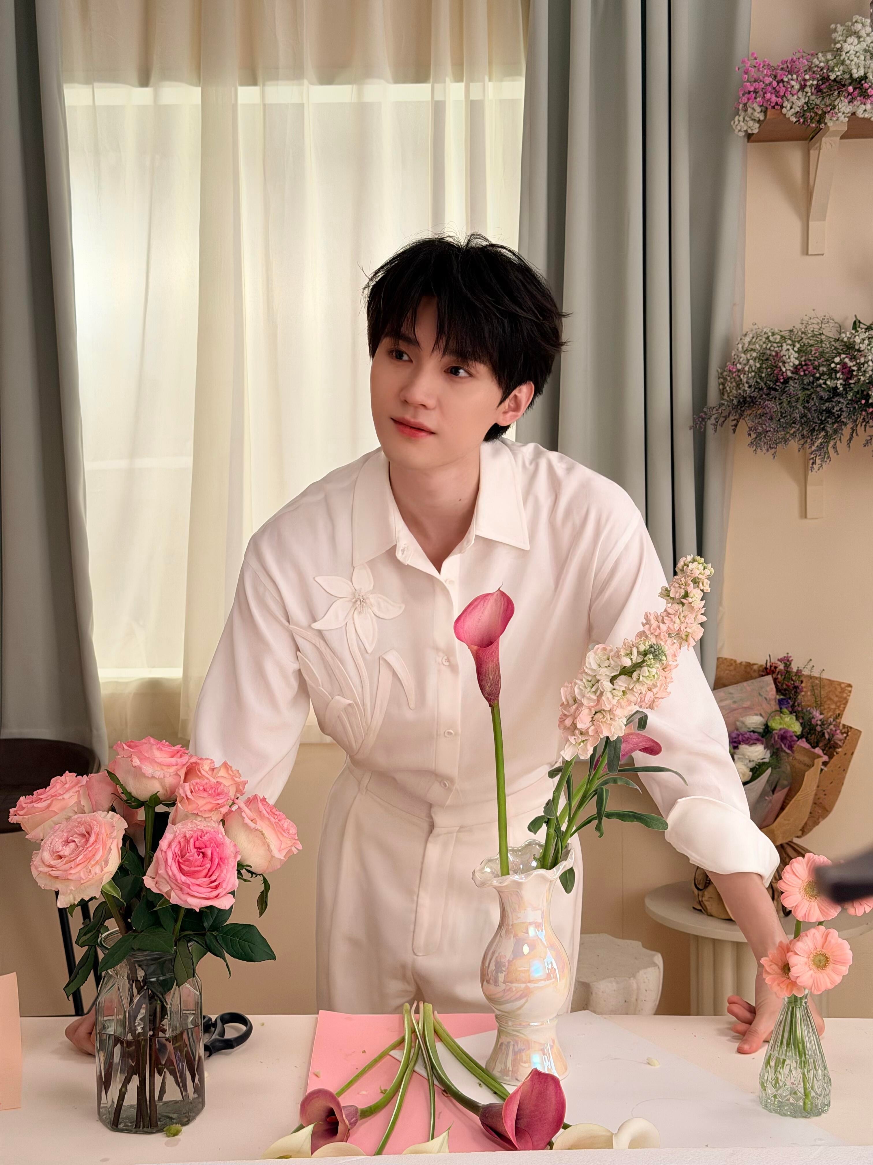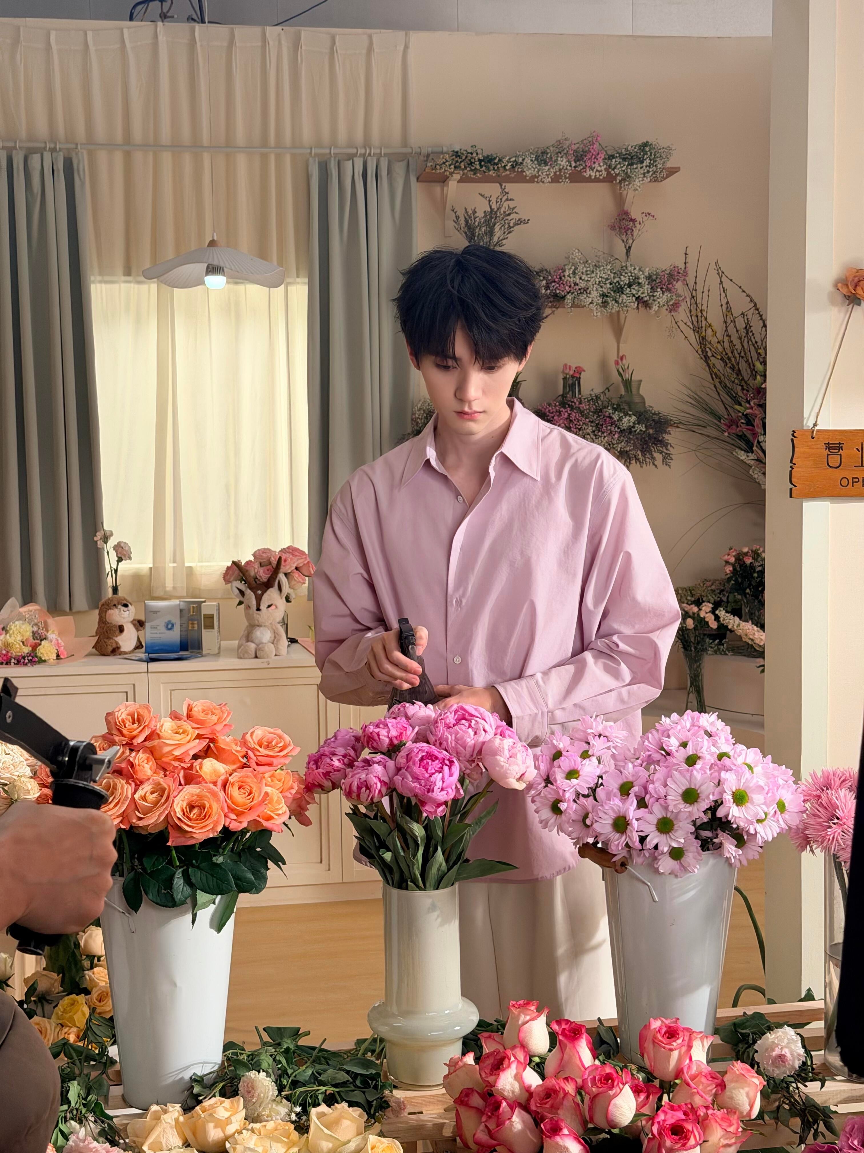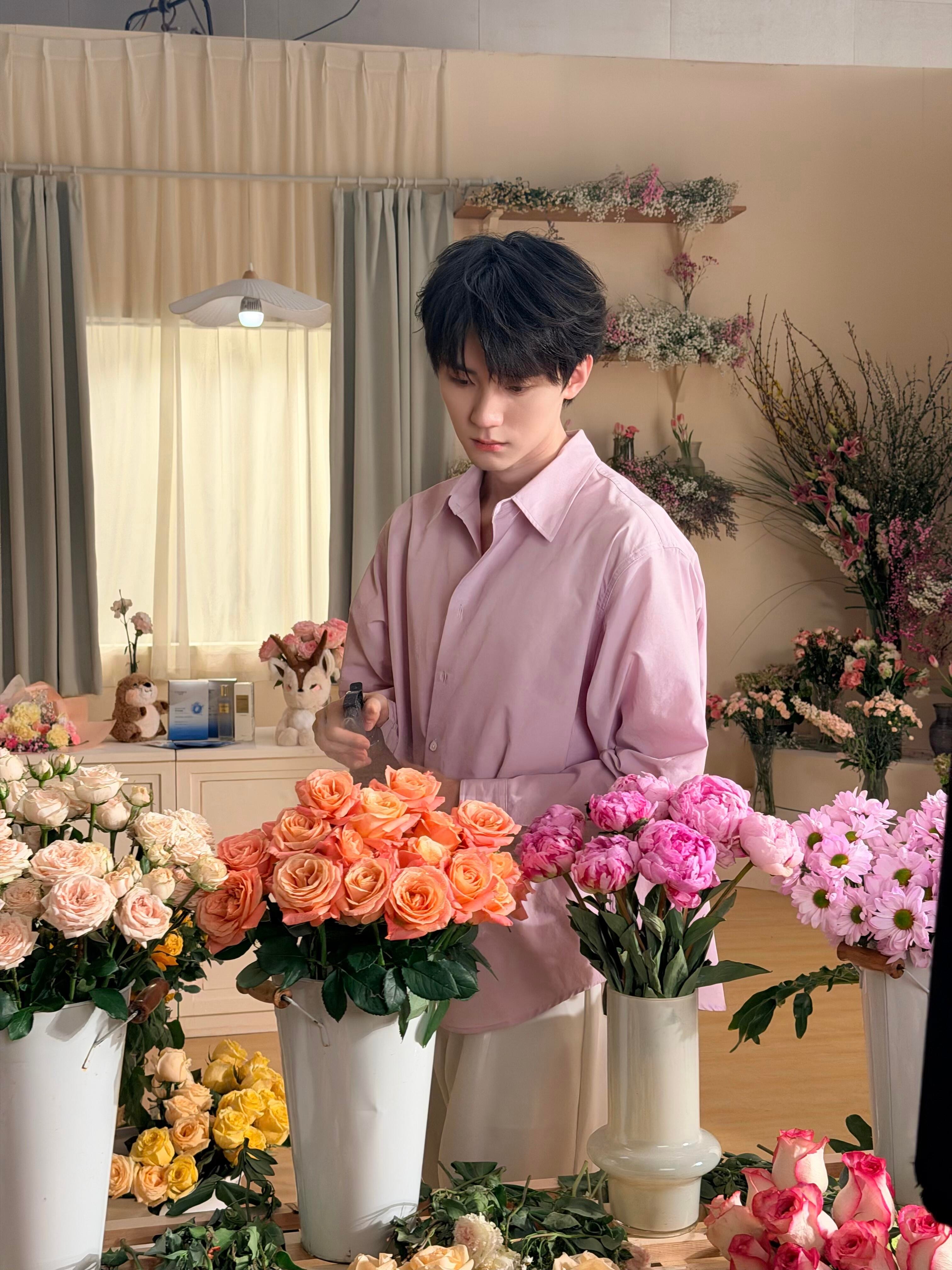 粉紫色花店主理人,今日宜买花🌸 周翊然粉紫色衬衫🌷周翊然花店主理人