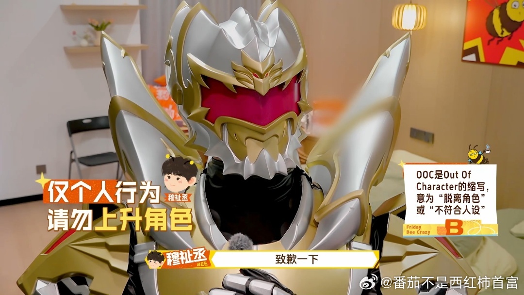 穆祉丞完全中二少年来的吧,一穿上铠甲就当自己是角色本身了,还提前跟大家说所做动作