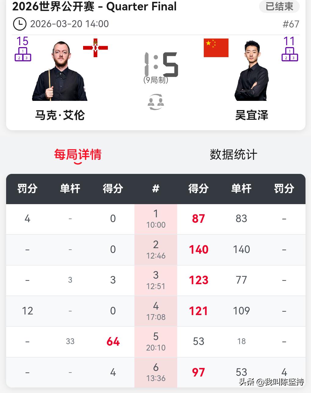 玉山公开赛半决赛先战两场,火箭归来,5-0横扫瑞恩戴,其中一局单杆拿下153,打