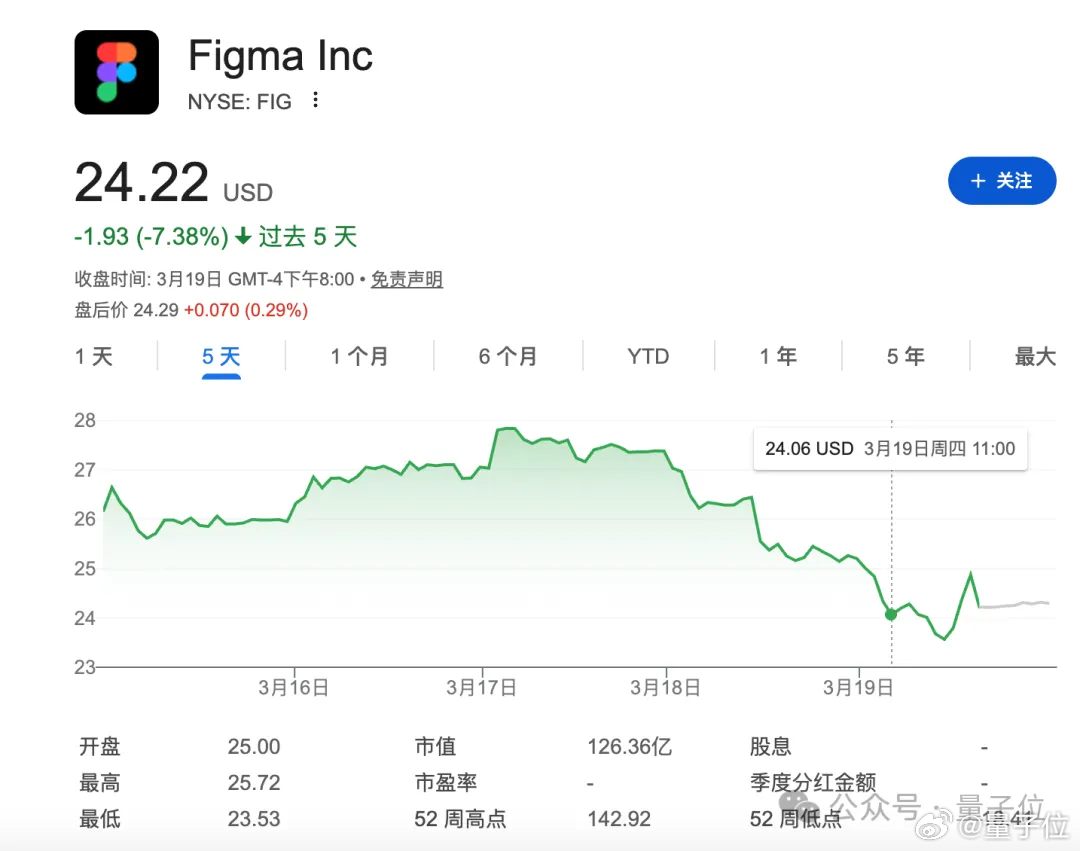 产品是周三发的,当天Figma股价直接暴跌8%,周四仍下跌约5%,两天内跌幅约13%。