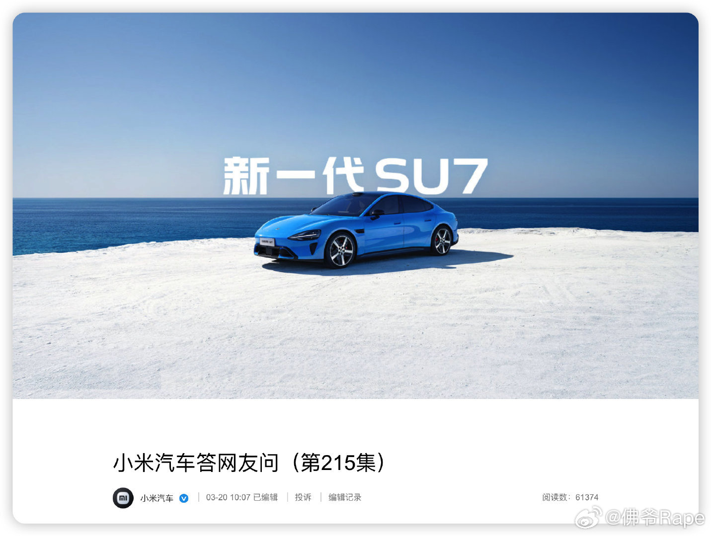 龙抬头小米回应新SU7提车时间听不懂的汽车黑话大v聊车新车上市小米汽车易车实测民间艺术观察小米汽车