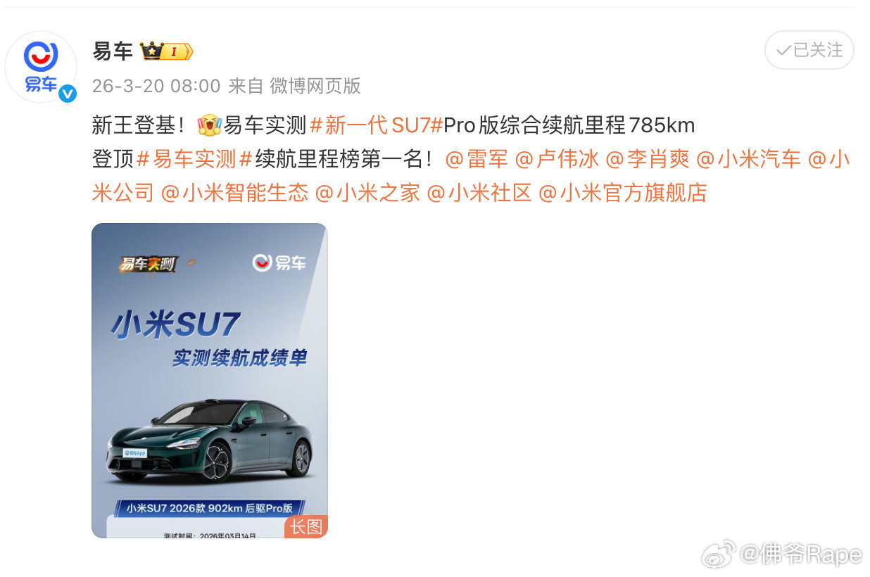 新一代SU7 真的太厉害啦👍!pro荣登榜首续航第一名 综合里程高达785km