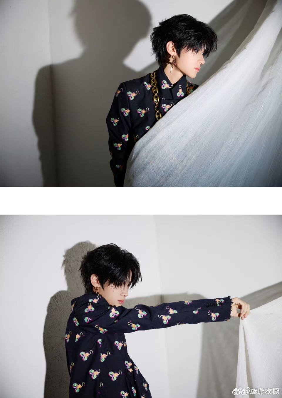 花衬衫在书墙前舒展,鎏金链是思想的锚点。影子与肢体共舞,定格成时光的诗行。张峻豪上城士新中式造型上城士非遗巡游展上城士活动