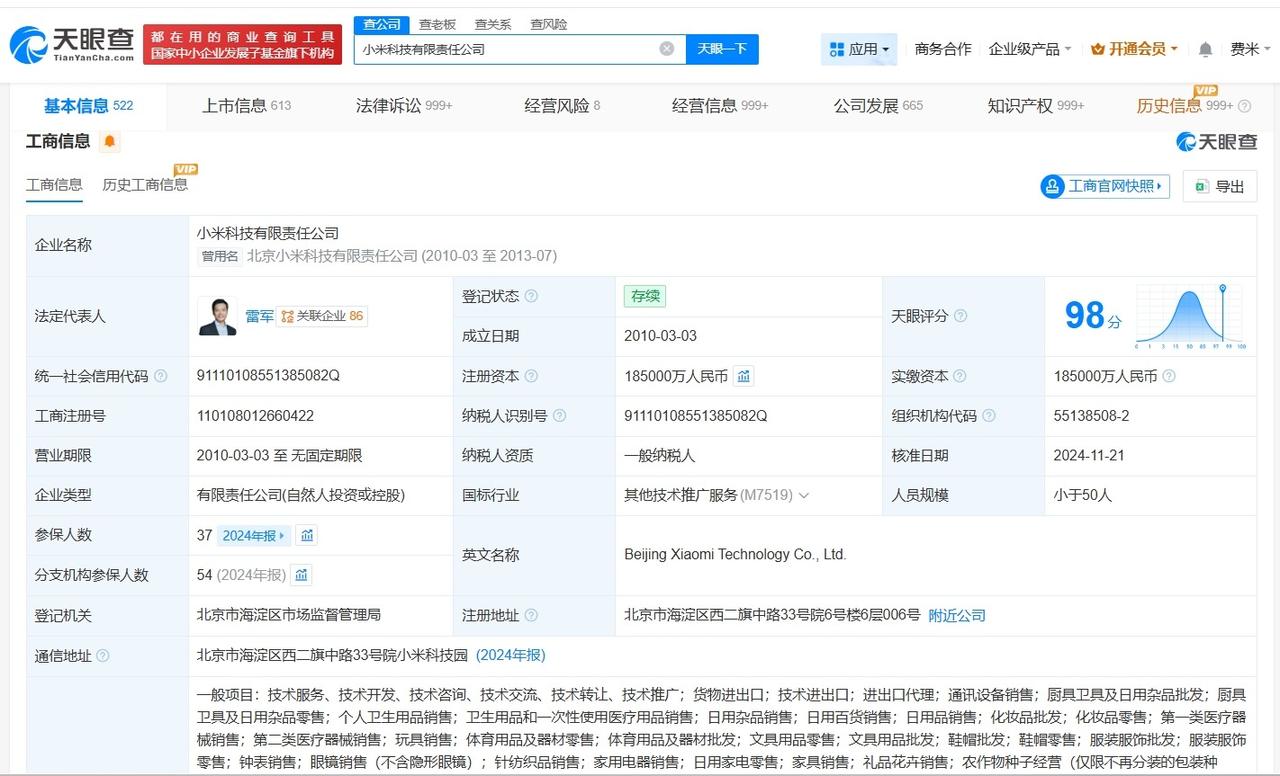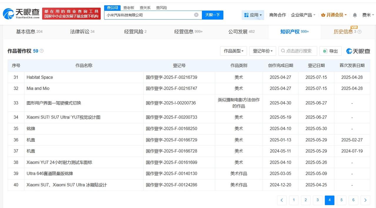 小米已注册SU7关联商标 小米已登记SU7关联作品著作权小米汽车 据媒体报道,雷军正式发布新一代小米SU7,标准版定价21.99万元起,相关话题引发关注。 天眼查知识产权信息显示,小米科技有限责任公司已成功注册多枚“XIAOMI SU7”商标,国际分类包括地毯席垫、通讯服务、厨房洁具等。此外,小米汽车科技有限公司已登记“Xiaomi SU7/ SU7 Ultra/ YU7视觉设计图”、“Xiaomi SU7、Xiaomi SU7 Ultra 冰箱贴设计”等作品著作权。 天眼查信息: