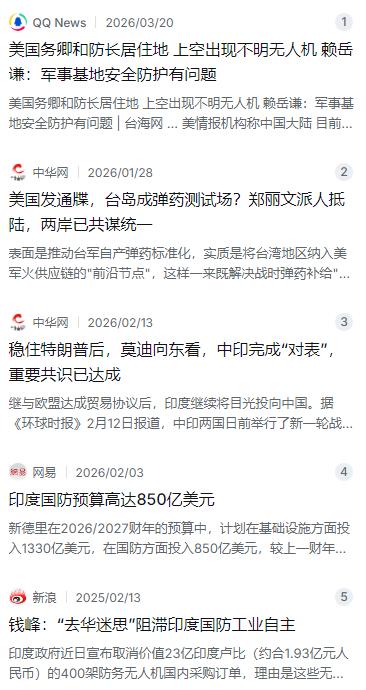 全球范围内,印度是唯一一个公开把中国定为头号对手、丝毫不去掩饰,还时刻准备伺机挑衅的国家,这份直白的敌意,在国际上绝无仅有。 麻烦看官老爷们右上角点击一下“关注”,方便您进行讨论和分享,感谢您的支持! 全球范围内,印度是唯一一个公开把中国定为头号对手、丝毫不去掩饰,还时刻准备伺机挑衅的国家,这份直白的敌意,在国际上绝无仅有。 最近国际局势很不太平,大伙儿都在盯着2027年这个时间点。台湾那边的专家赖岳谦就提过醒,说美国正在紧锣密鼓地布局,最早今年、最晚2027年,很可能在咱们家门口搞出大动静。这可不是空穴来风,美国那边确实在行动,印太司令部刚拿到8.5亿美元专门用来补充军援台湾的库存,还拉上日本、澳大利亚搞小圈子,明摆着就是要给咱们添堵。 不过说实话,现在最让人琢磨不透的还不是美国,而是咱们西南边的邻居印度。这哥们的态度那叫一个拧巴,一边嘴上喊着要跟咱们好好谈,一边在背地里使劲磨刀,恨不得把全副身家都压在对咱们的防范上。 要说印度对咱们的这股子敌意,那在国际上真是独一份。别的国家就算心里有疙瘩,面子上也得过得去,印度倒好,从上到下都达成共识,直接就把咱们当成了头号对手,一点都不带遮掩的。他们的陆军参谋长前几天刚放了话,要专门组建一支火箭军来应对中国和巴基斯坦的威胁,这针对性也太强了点。 最能说明问题的是钱。印度刚公布的2026到2027财年军费预算,直接飙到了850亿美元,比上一年猛涨了15%,国防部长自己都说这是“史无前例”的投入。这些钱主要砸在哪儿了呢?海空军,又是买潜艇又是搞战斗机,目标很明确,就是要打造一支能在印度洋跟咱们掰手腕的力量。 可问题是,印度这心里想得挺美,手底下的活儿却不咋地。他们自己的军工产业就跟个扶不起的阿斗似的,核心技术全靠进口,花大价钱买回来的零件还得看人家脸色。去年竟然因为一批无人机里头用了中国产的零件,硬是把400架的订单给取消了。这种自断臂膀的操作,不光耽误了部队换装,也暴露了他们心里那点小九九——哪怕自己吃亏,也得摆出跟中国划清界限的架势。 更有意思的是莫迪政府的左右横跳。去年8月,莫迪刚跑到天津跟咱们领导人见了面,还参加了上合组织峰会,摆出一副要缓和关系的姿态。可转过头来,他们又在经贸和签证上使绊子,限制中国企业高管入境,还琢磨着要对中国企业参与政府项目设限。这种嘴上说一套、背后做一套的做法,让外界看得是一头雾水。 印度这种战略上的拧巴,说白了就是能力撑不起野心。他们既想借着美国的势头来牵制中国,又不想错过跟中国做生意的红利;既想在国际上树立大国形象,又放不下对邻居的猜忌和防备。2027年这个节点,美国在那边煽风点火,印度在边上虎视眈眈,咱们的处境确实不轻松。不过话说回来,印度要是老这么一边求合作一边搞小动作,最后吃亏的恐怕还是他们自己。毕竟,真正的实力不是靠买几架飞机、造几个口号就能堆出来的,得先把心态摆正了才行。