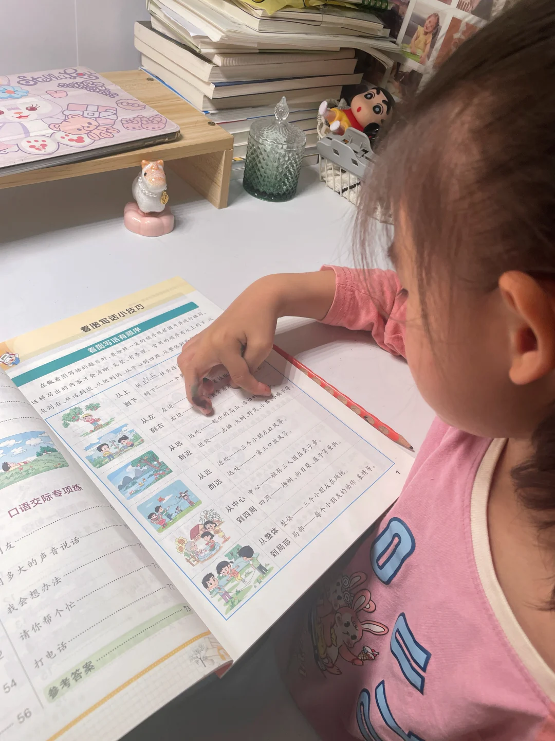 我女儿即将上一年级了,但看图也总是支支吾吾,只能说出一两个点。
