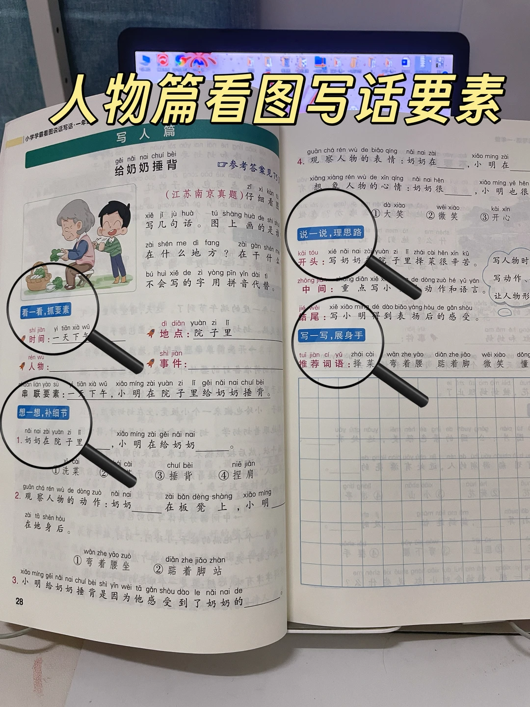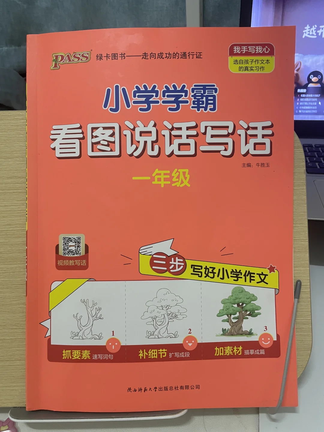 我给娃用的这本《看图说话写话》,就把整个学习路径拆得明明白白,全国通用,同步人教版教材,精准匹配1-8单元习作要求,从审题到成文全程指导。