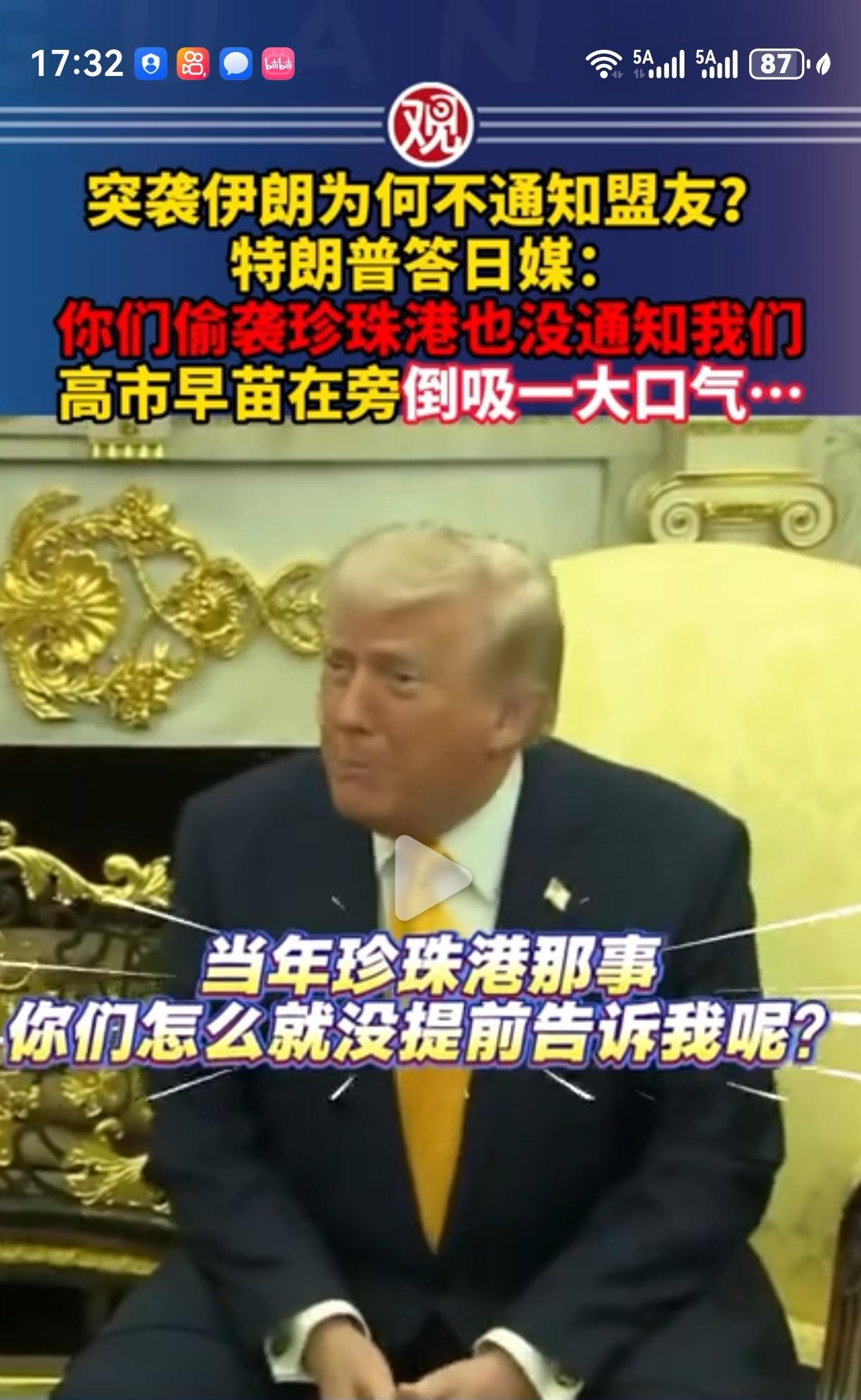 特朗普:说到出其不意,没有比日本更懂的! 我笑的肚子疼,这就是特朗普,这就是美国文化! 特朗普和高市早苗,当被日本记者问到对伊朗发动袭击时,为什么没有通知对方? 特朗普:就是为了出其不意。 说到出其不意,没有比日本 更懂的! 当初珍珠港那事,你们怎么没有提前告诉我呢? 高市早苗的肢体反应,表情管理,倒收了一口气,定了定神! 特朗普还真是个人物,说实话,很喜欢特朗普的,老天应该再给他三十年,他会干很多别人想干而干不了的事,说不准美国会发展成一个没有霸权,没有北约帮派,心态平衡的真正民主国家!特朗普会见高市早苗为何三句话不离安倍晋三