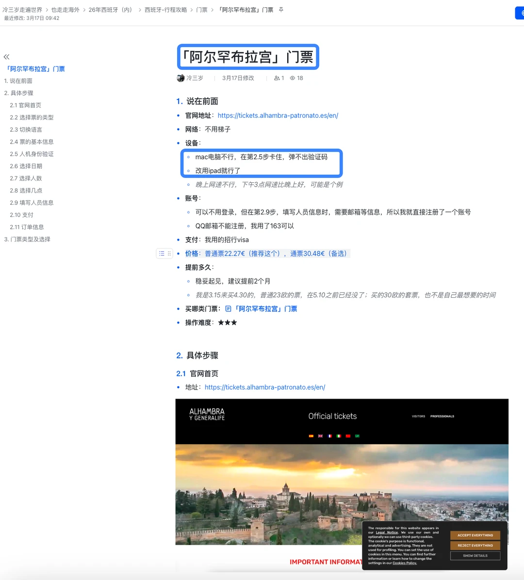 其中阿尔罕布拉宫提前一个半月,我还是没买到自己想要的时间段
