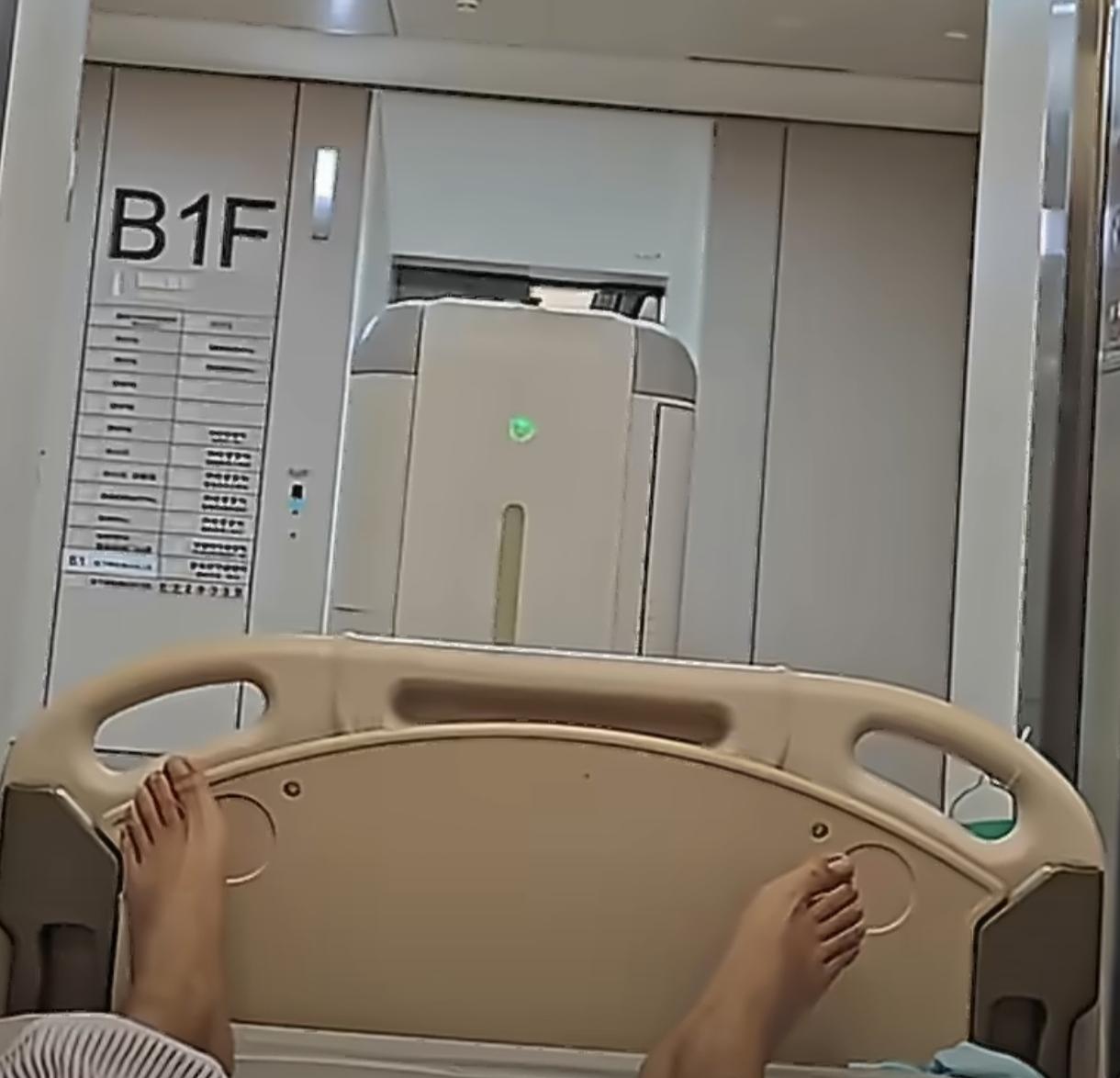 这下尴尬了! 男子因骨折躺在病床上乘电梯, 遇上医院智能机器人求让路,机器人一个