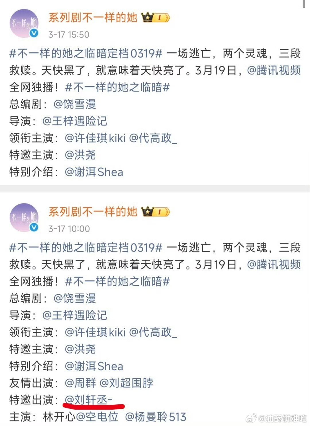 刘轩丞新剧镜头被删不一样的她剧里也把刘轩丞删了,前两天还说只是微博除名剧里不影响