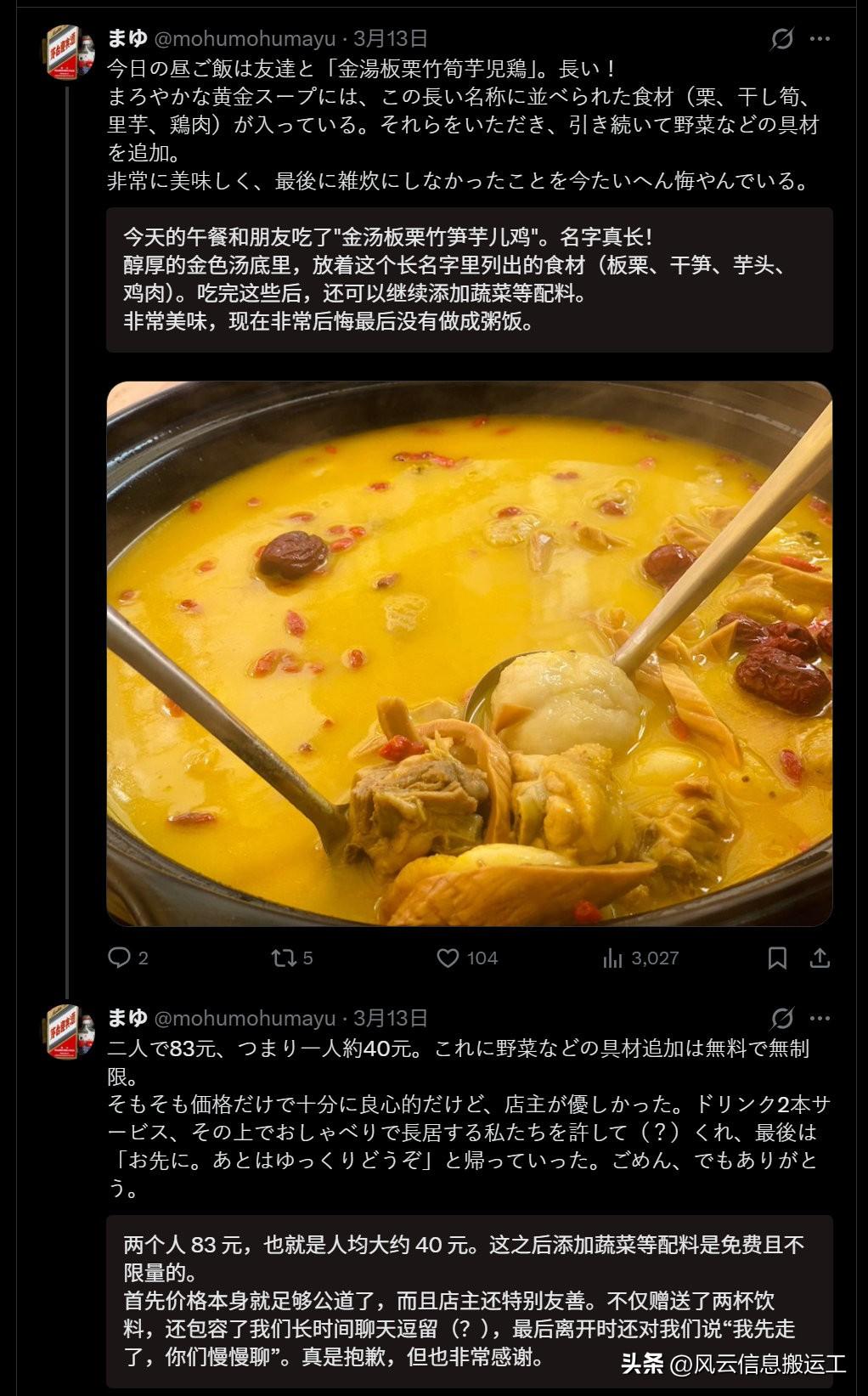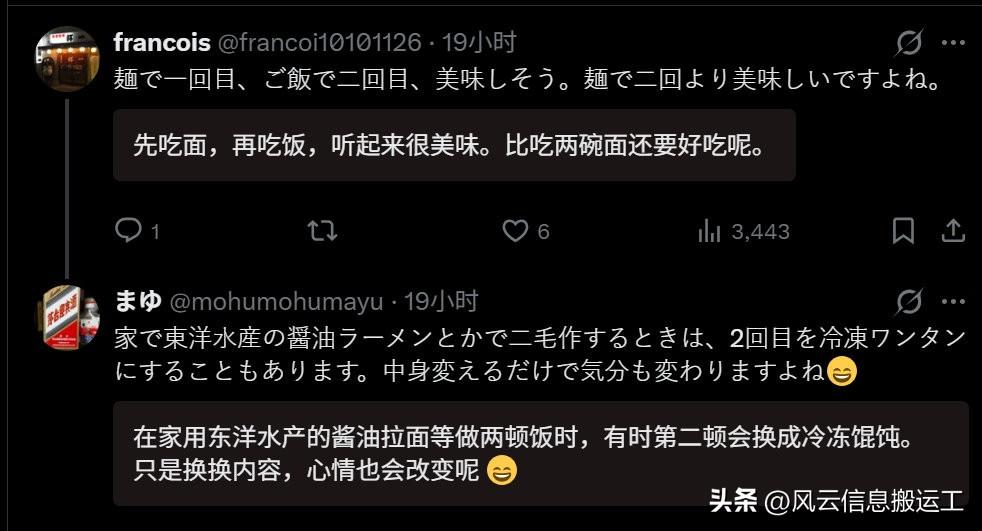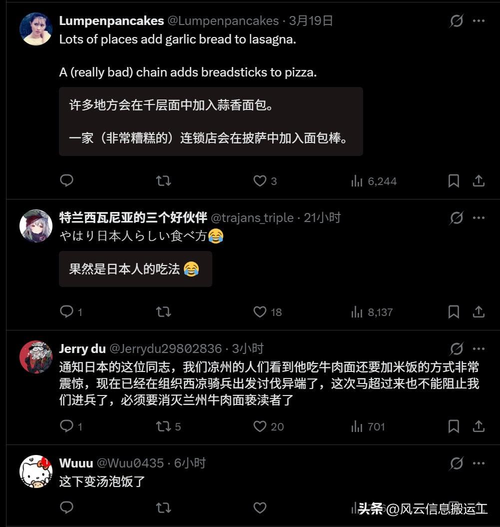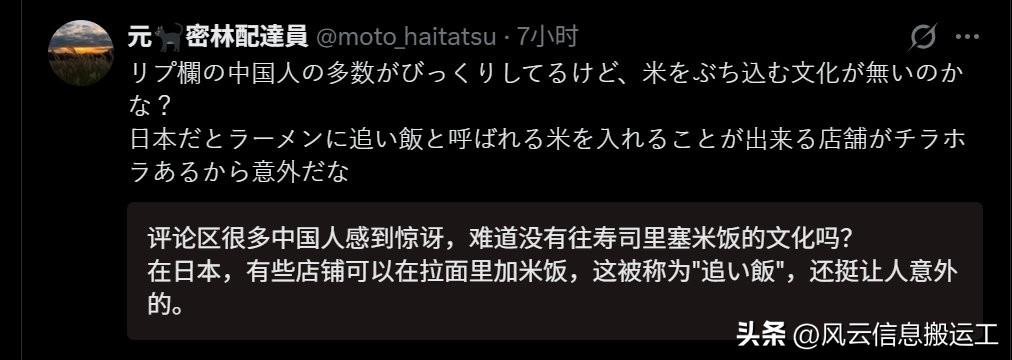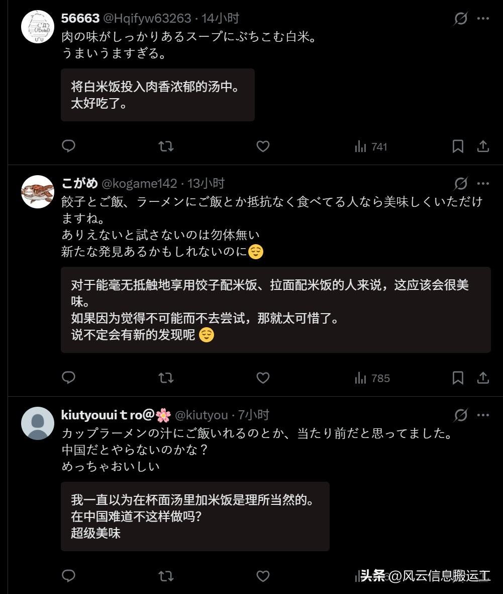 日本网民分享在中国吃完一碗兰州拉面,剩下的汤加饭泡着吃……