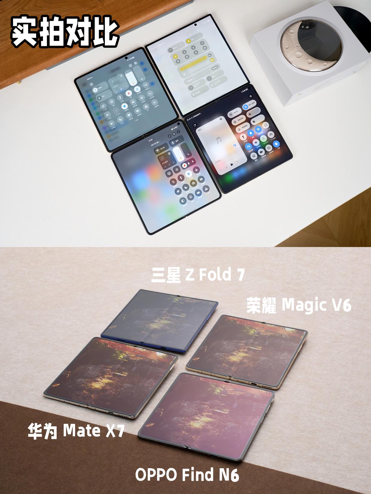不吹不黑,四大折叠屏旗舰该怎么评价? 最近折叠屏很火啊,苹果折叠屏要来了,搞得很多人都想换台折叠屏试试,又不知道选哪款好 对比一下目前比较热门的四大折叠,荣耀Magic V6、三星Z Fold7、华为Mate X7以及OPPO Find N6,大家觉得哪款更好哦? 外观的话主要还是看个人喜好吧,除了三星之外,其它几款都是大圆,只是设计细节有些不同。但看内屏的话,肯定是OPPO更有优势了,Find N6首发的无感折痕视觉效果真的优秀,还能做到久用平整 系统的话这四款都挺优秀的,华为的鸿蒙OS 6国产标杆,三星的OneUI 8自由的很高,OPPO的ColorOS16机圈德芙的名号已经打响。 不过AI功能体验的话,还是国产机型体验好一点,像华为荣耀就有不少AI功能,OPPO也是,AI闪记、AI录音等等,还升级了AI手写笔,更适配折叠屏的使用场景 实际对比着,这几款可以算是各有优势吧,主要是得按需求来选。要我的话我会投OPPO一票,今年Find N6可以说是全面升级了,久用平整的屏幕加哈苏超清四摄,还有超多便捷的AI功能,大概率就是2026最值得购买的折叠屏了,而且现在线上买还有24期,以旧换新还有1400补贴,价格也蛮香的,大家觉得呢?