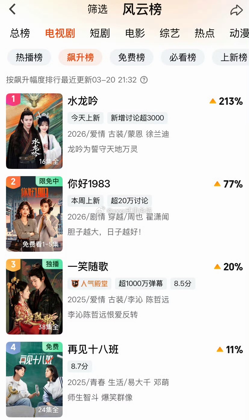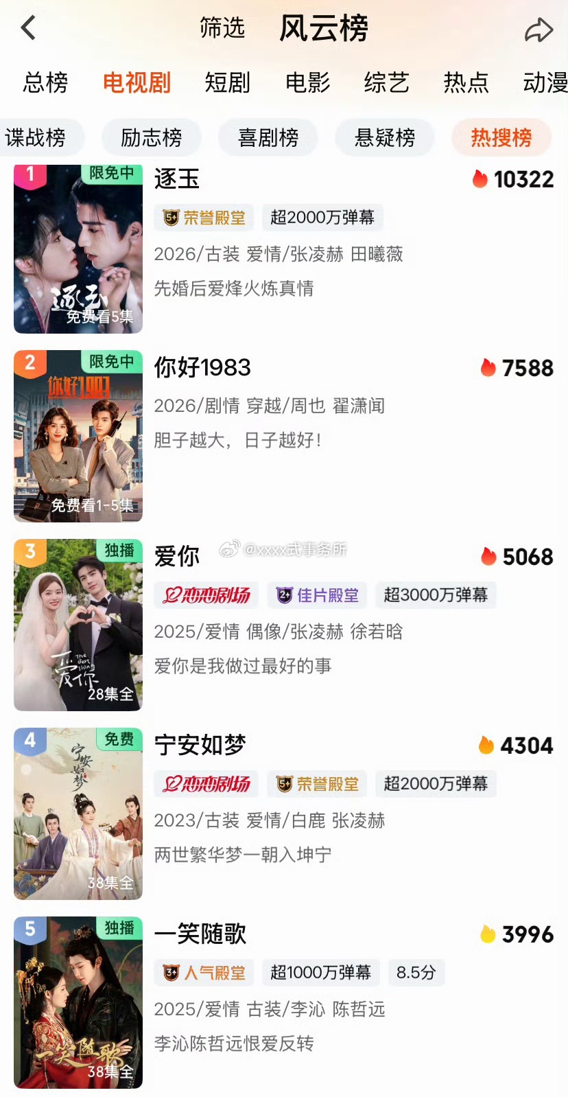 陈哲远一笑随歌和白色橄榄树又在爱奇艺一众热播剧中,上榜了