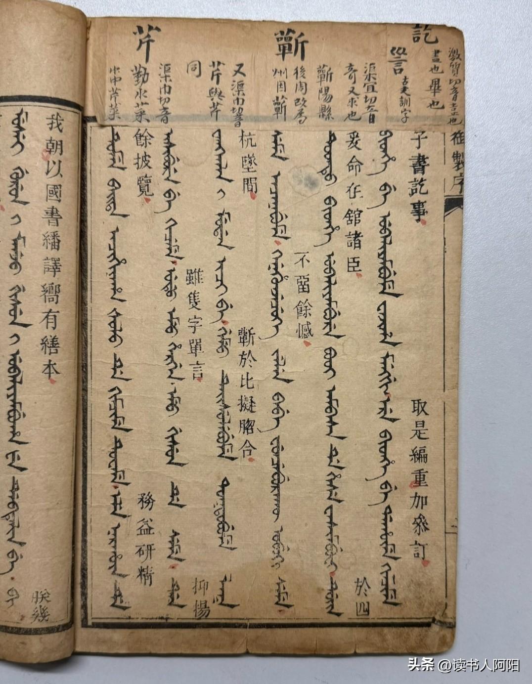 你见过传说中的满文吗? 已经失传很久了吧!刚看一个美国人分享的祖父留下来的中国文物,竟然有几页是已经有百年历史的满文汉文双语的古书! 非常的少见,赶快分享给大家鉴赏一下,可惜他也只有这几页。 这也不知道哪里来的! 不过就这几页你就能看出来满文为啥会被淘汰了! 连满族同胞自己都不愿意学! 和汉字一比,确实太复杂了,汉字几个字,它需要一大段,不实用,当年会写这些字的满族人估计都是极少数的高精尖人才![捂脸][捂脸][捂脸]