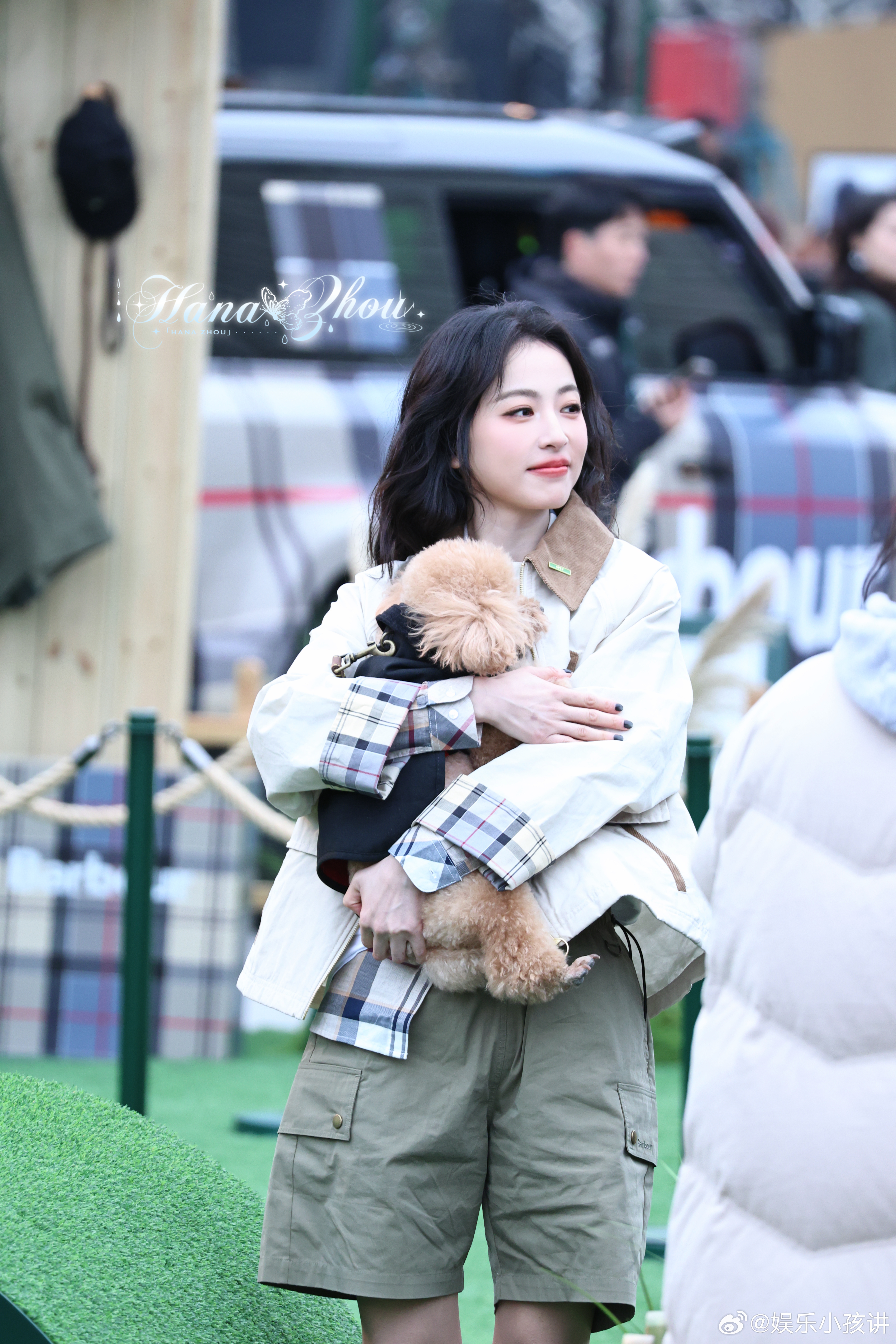 想魂穿周雨彤手里牵着的那只小狗被周雨彤的英伦风硬控了 姐姐给小狗戴了同款英伦风项