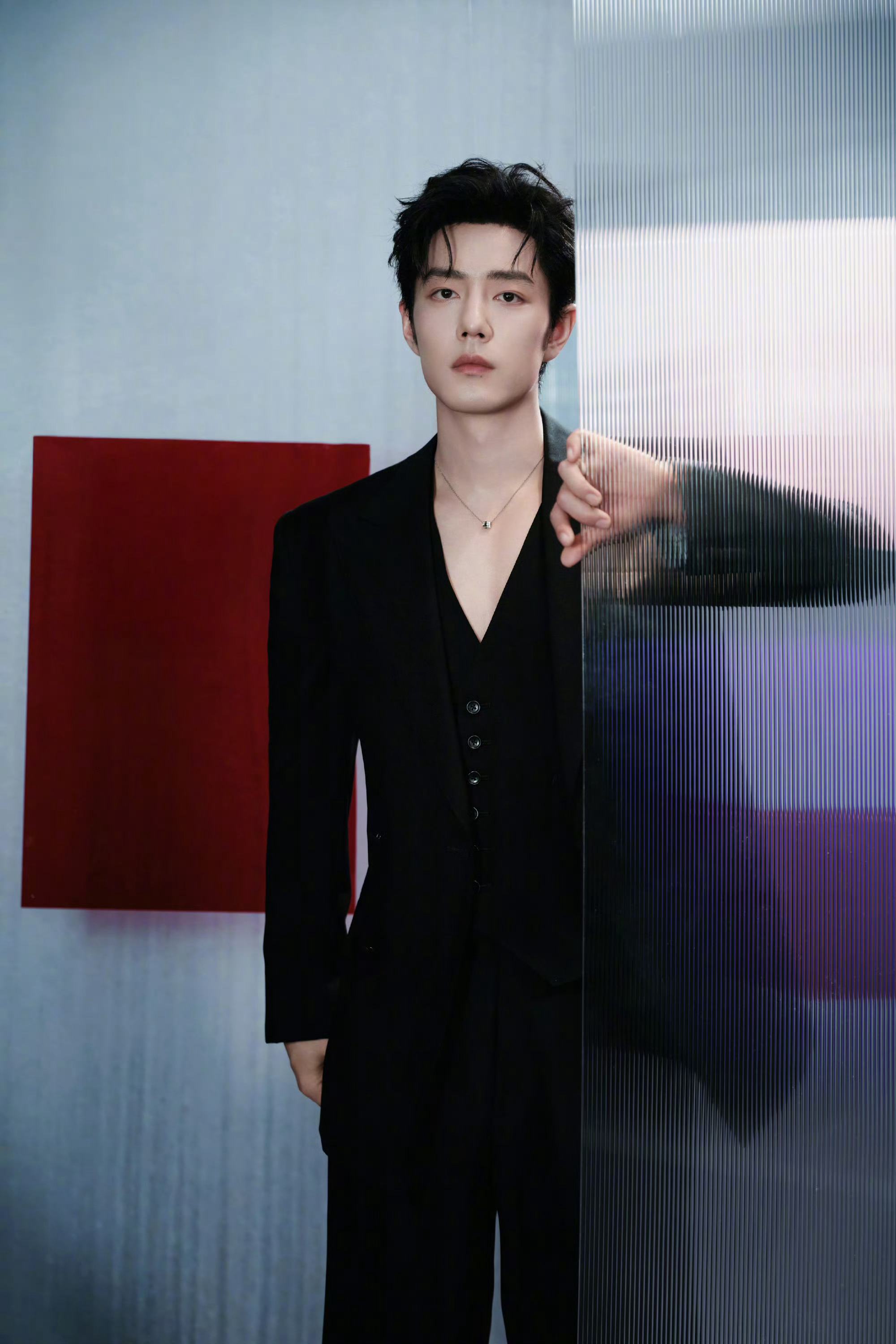肖战深V黑西装live肖战太帅了