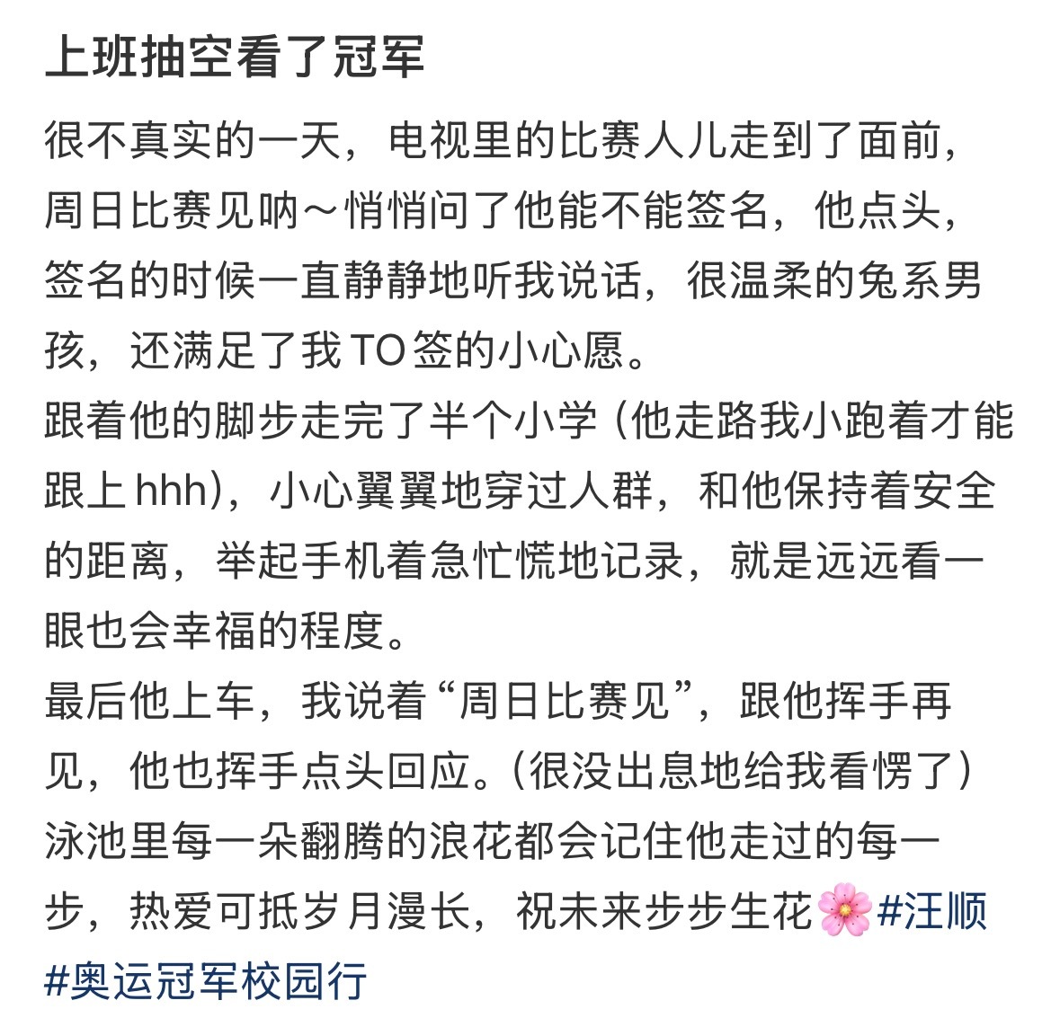 图片跟文字都可以感觉出汪顺是一个很温暖的人