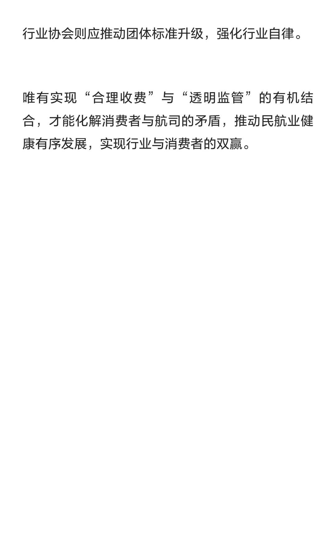 唯有实现“合理收费”与“透明监管”的有机结合,才能化解消费者与航司的矛盾