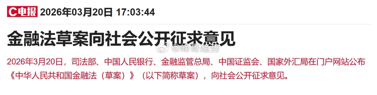 一是央行,证监会以及外汇局和金管局等五部门最新消息,金融法草案向社会公开征求意见;